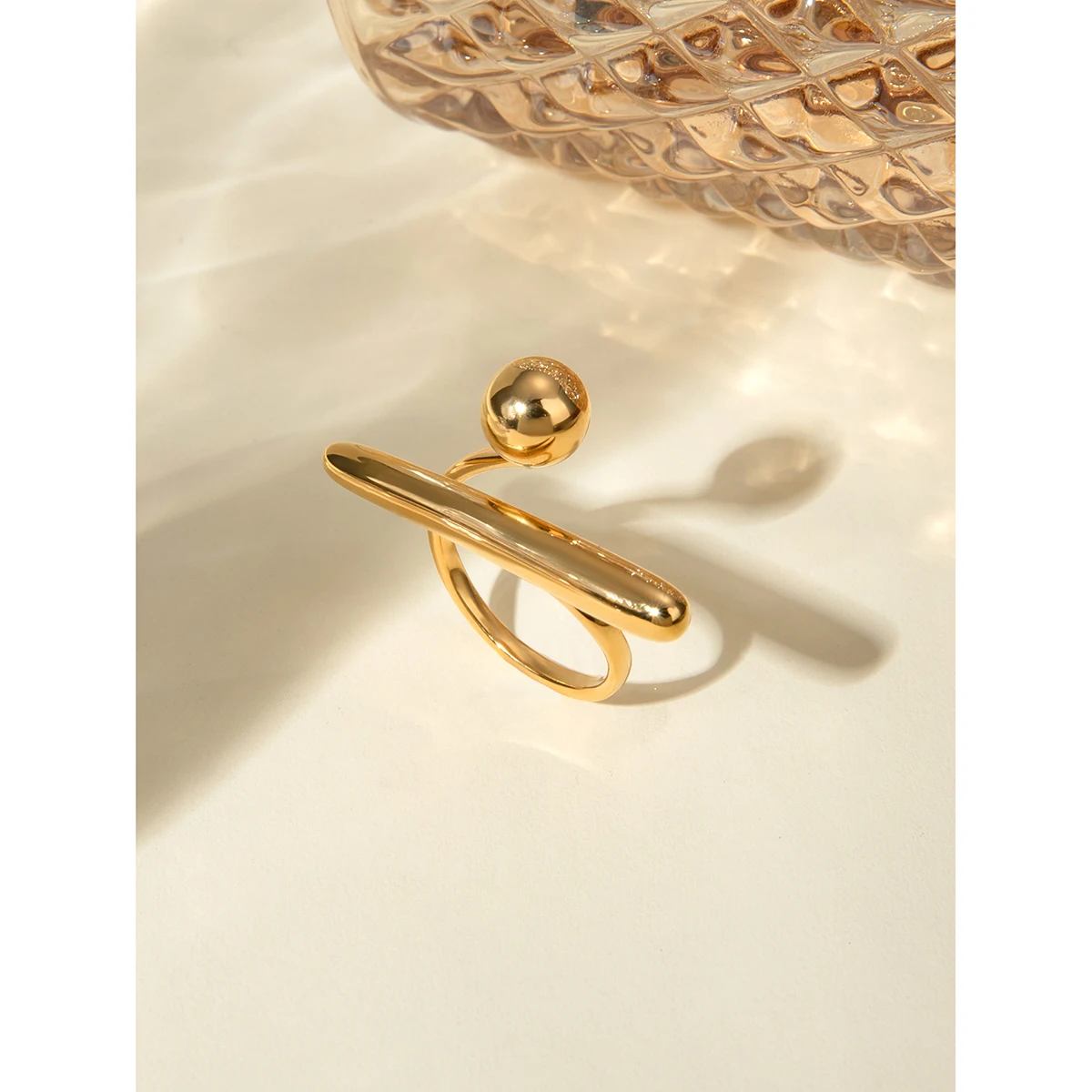 Anillo abierto de simplicidad geométrica chapado en PVD de acero inoxidable de verano declaración 18K para mujer joyería playa arenosa