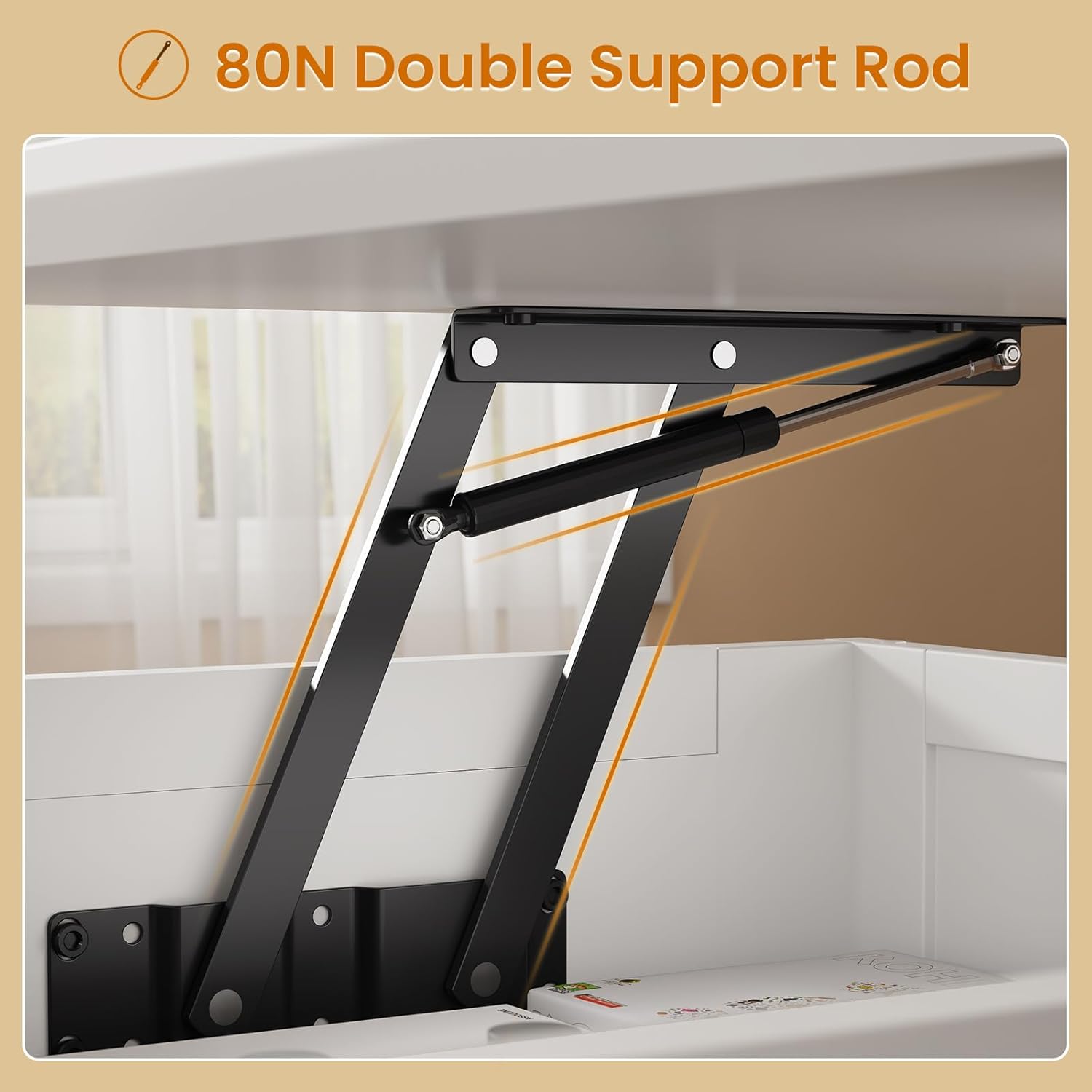 - LIFT TOP DESIGN: This lift top coffee table allows for easy adjustment of different heights and provides both enclosed and open storage spaces. Its sturdy metal lift structure ensures smooth and even lifting and lowering of the tabletop, metal hydraulic rod can hold up to 100 pounds.