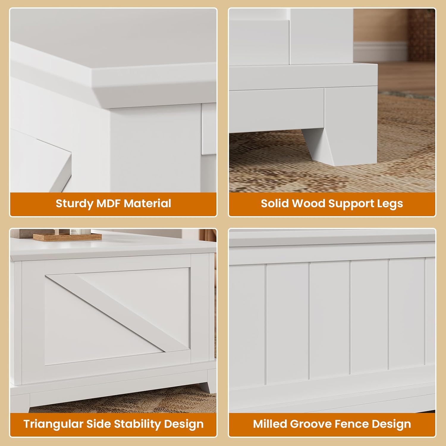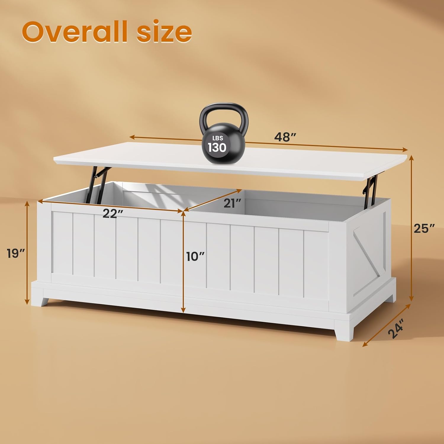48” Lift Top Coffee Table for Living Room, Coffee Tables with Large Storage & Fence Design, Coffee Table Lifting top for Living Room Rustic Center Table for Home and Office, White