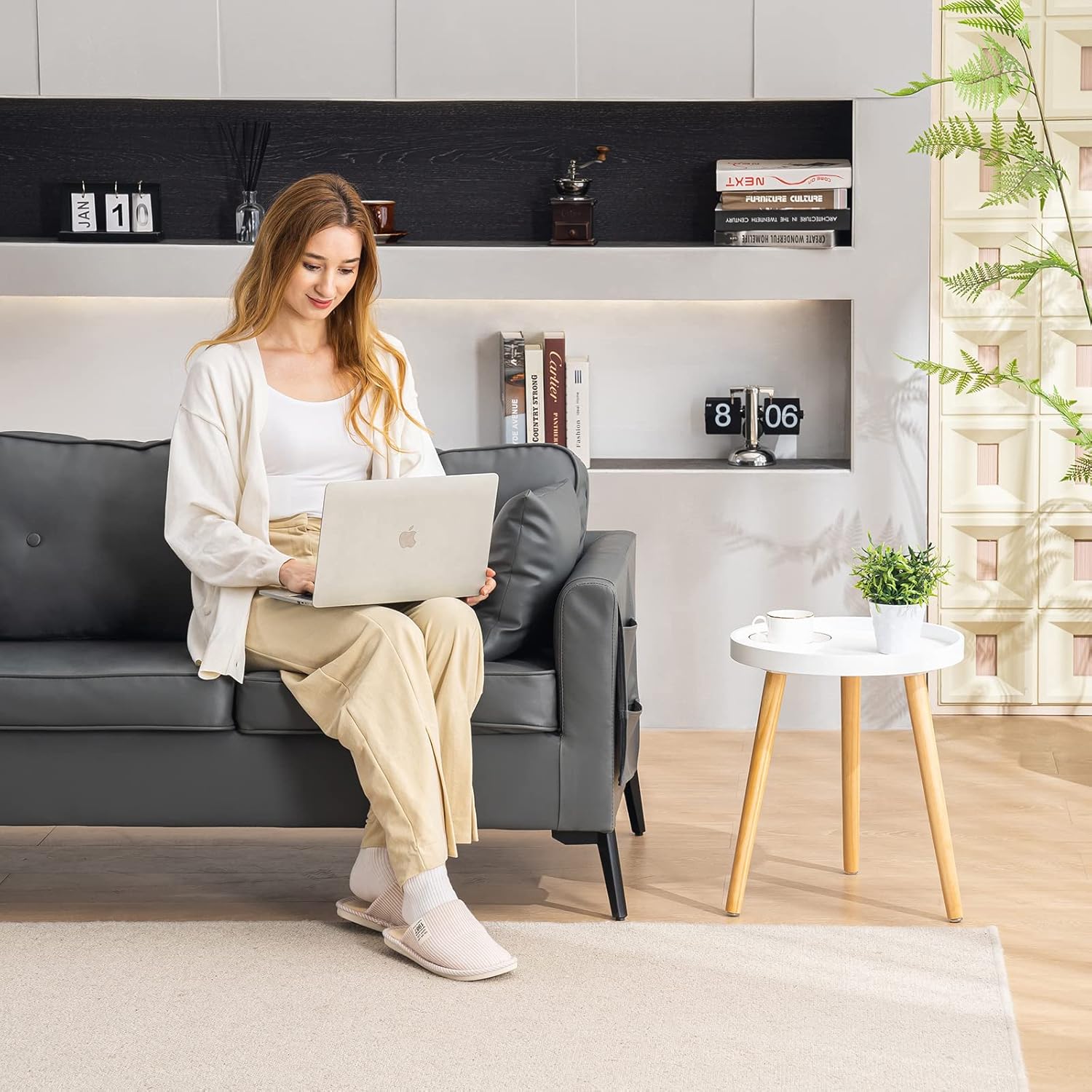 - 【STURDY SIDE TABLE】-The table top and legs of this round side table are connected by thick solid wood blocks,which prevent the tabletop from bulging due to excessive installation force. The legs of the coffee end table have a triangular structure which is very stable.