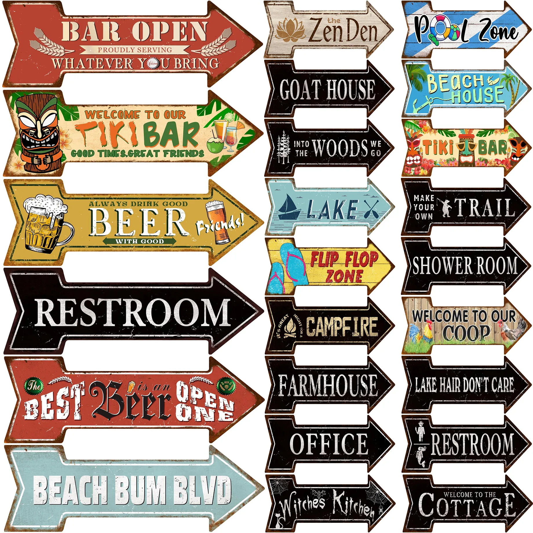 Letrero de hojalata con forma de flecha, barra Tiki de Metal, indicador de placa abierta, cafetería, tienda de té, Bar, Pub, cartel colgante, decoración de pared interior, placa de hierro