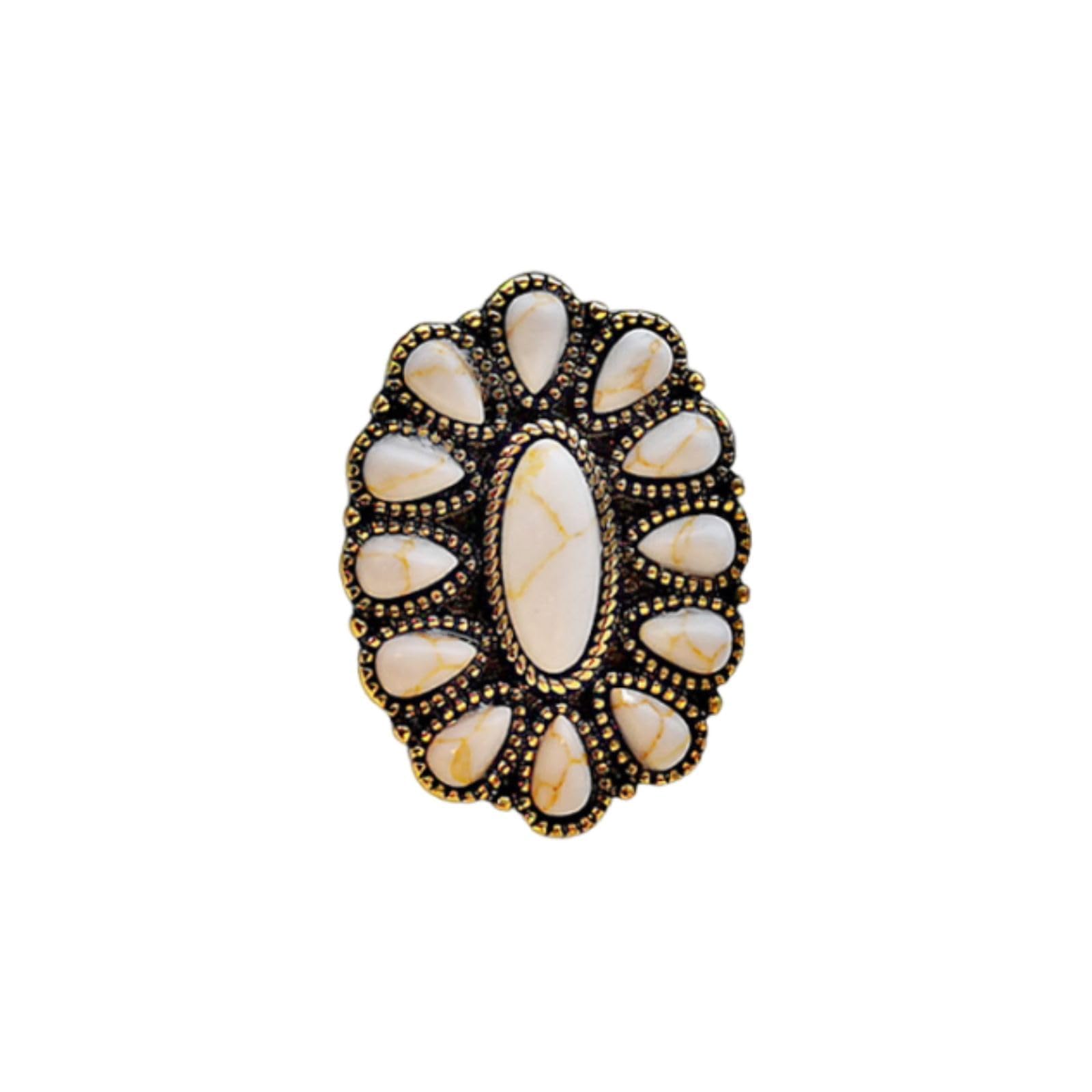 Bohemian Turquoise Oval Flower Rings Vintage Geometric Ethnic Natural Stone Adjustable Silver Joint Knuckle Rings Western Cowgirl Statement Jewelry