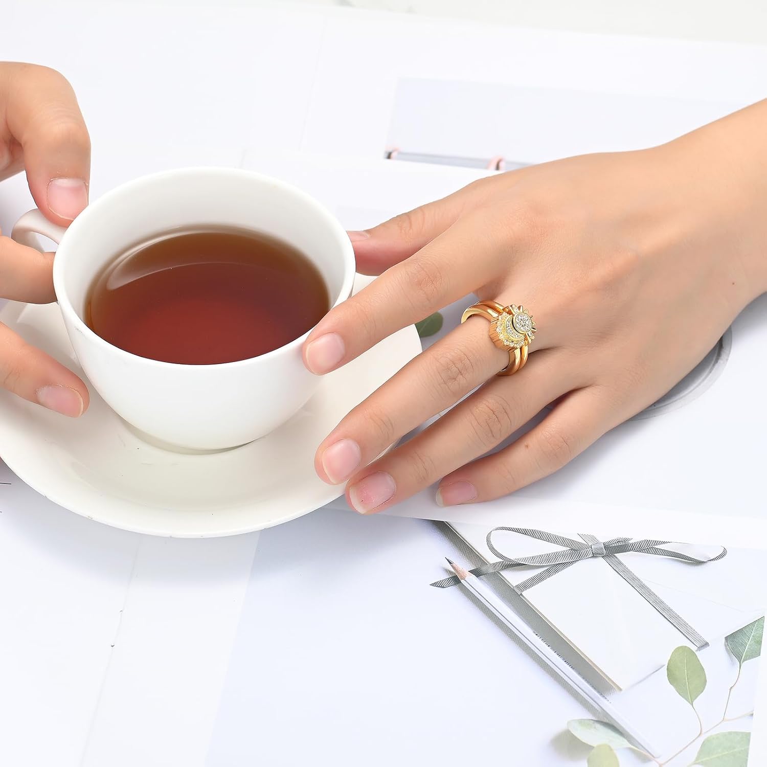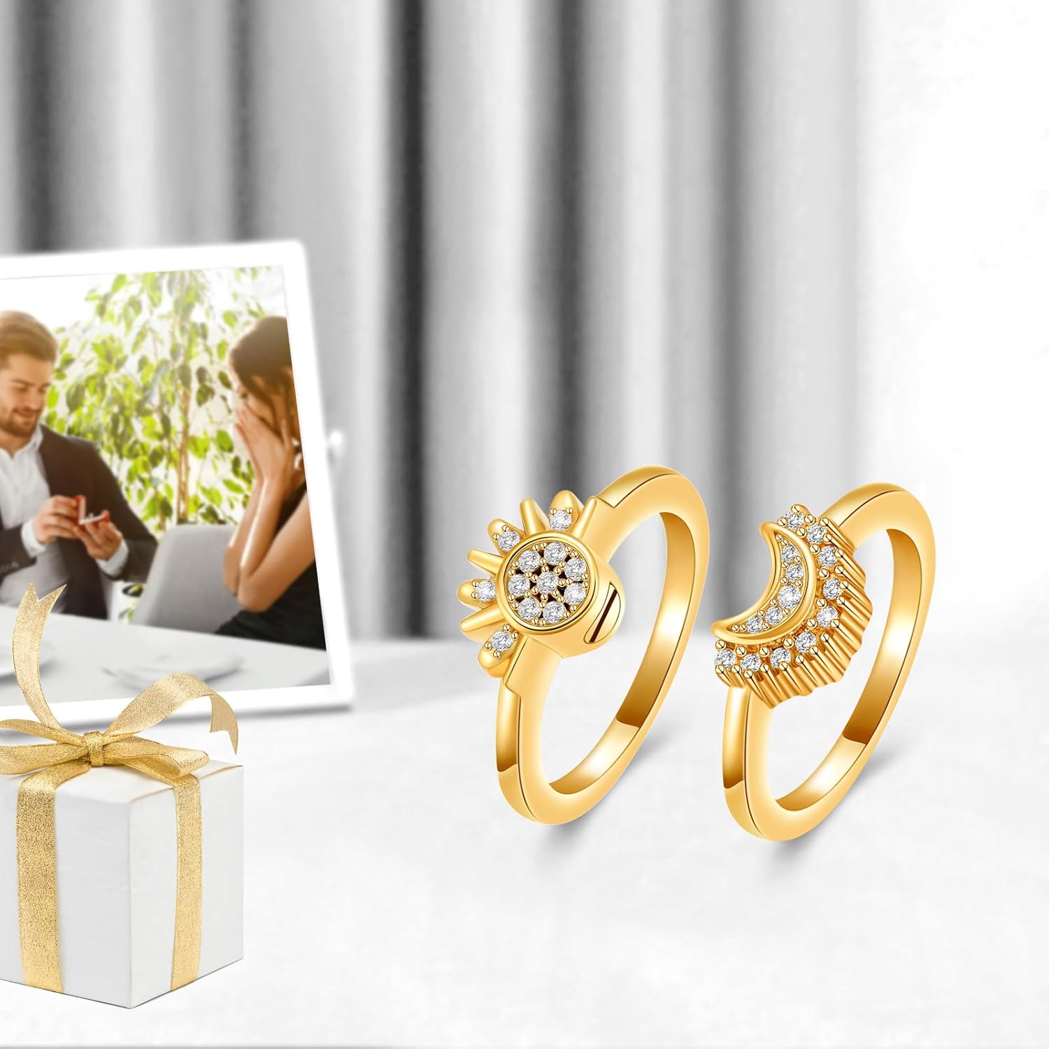 Cremation Jewelry for Ashes Rings - Celestial Sun and Moon Ring Set,Sparkling Sun Ring/Blue Moon Ring/Silver Plating,Friendship Promise Ring,Stackable Celestial Rings,Gift for Women/Girls