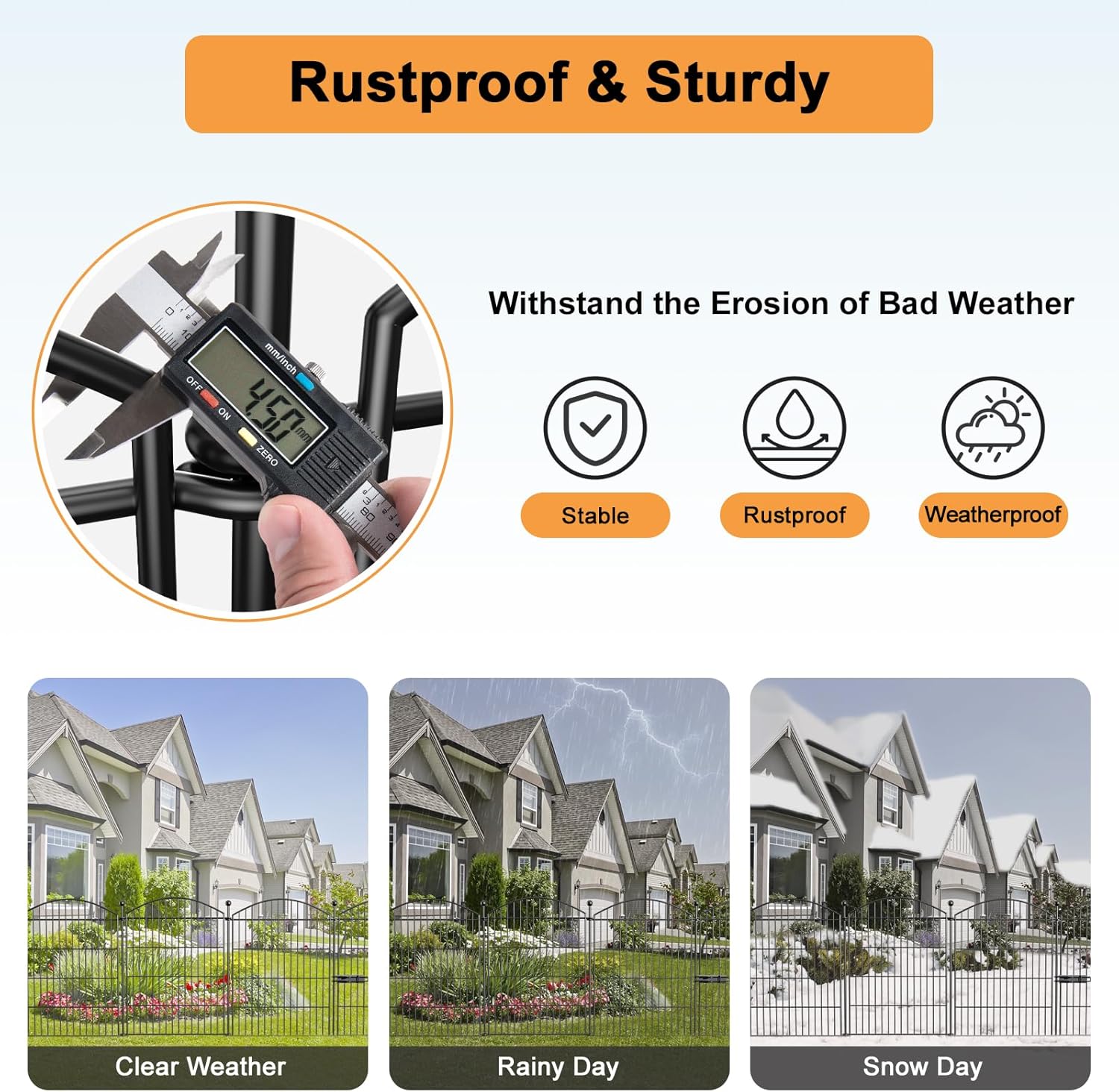 - Rustproof Decoration: This metal no dig fence Fence is Welded by Thick Metal Wire, Which Enhanced Welding Strength, Not Easy to Crack, very Solid. The Surface is Treated with Baking Paint Process, Rustproof and Well Durability. It Can Work for You for a Long Time Even In All Kinds of Bad Weather. Make your outdoor space a charming oasis with our garden fencing.