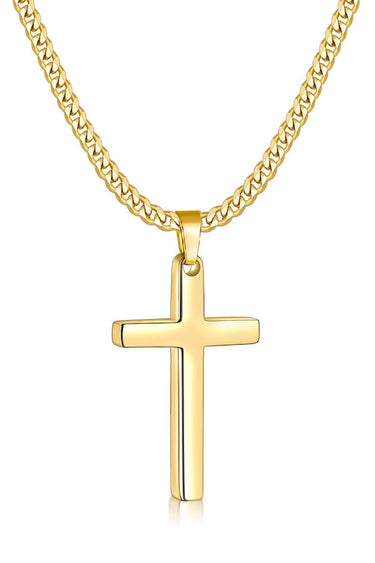 Fiusem Cross Necklace for Men and Women, Gold Plated Mens Cross Necklaces with 3.5mm Cuban Chain, Stainless Steel Pendant Chain 16-24 Inches