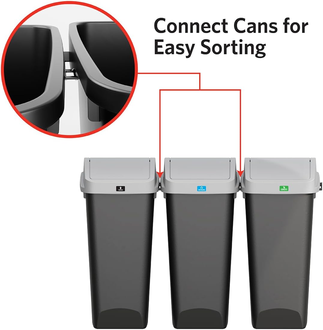 - WASTE & RECYCLING STATION FOR HOMES AND OFFICES - Reduce waste by sorting your recyclables and compostables with the Glad Link & Sort. Three 12 gallon plastic trash cans link together to create a single recycling center.