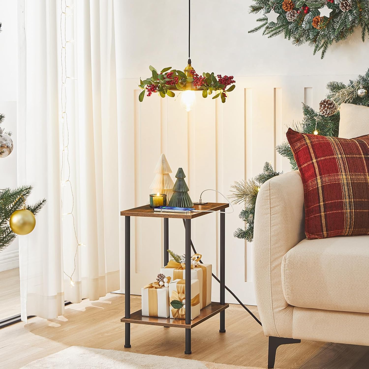 HOOBRO Side Table with Charging Station, End Table with USB Ports and Outlet, Nightstand with 2-Layer Storage Shelves for Small Spaces, Living Room, Bedroom, Stable Frame, Rustic Brown BF09UBZ01