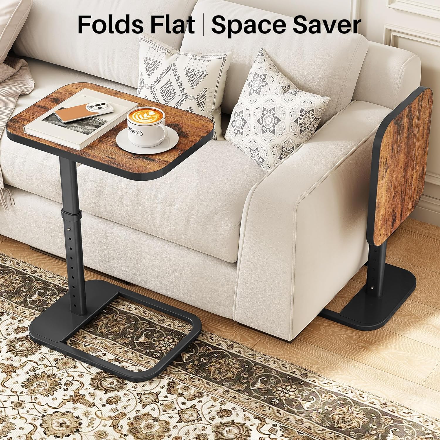 Kitstorack TV Tray Table, Adjustable Height & Flip-Top & Rounded Metal Corners, Snack Table for Couch, Sofa, Bed, Chair, Living Room, C Shaped End Side Table for Eating, Dinner or Laptop, Small Spaces