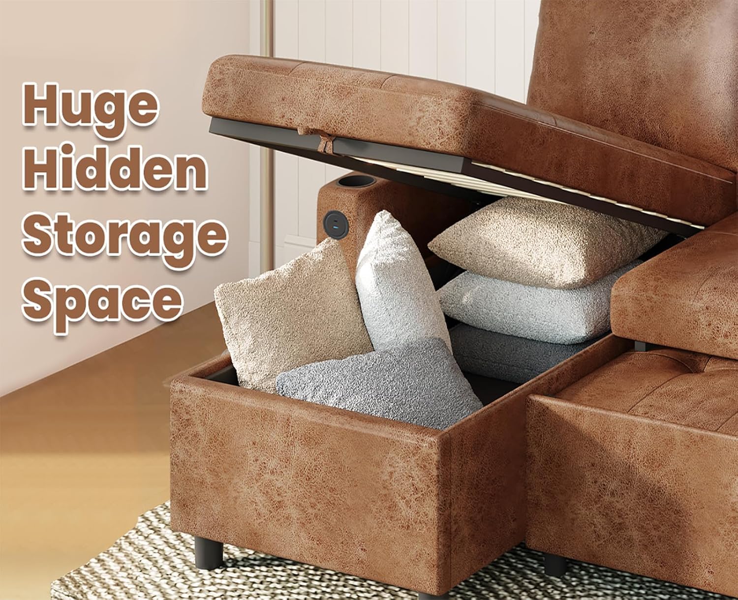 - Sleeper Sofa with 4.4 Cu.Ft Storage Chaise:Sectional sleeper sofa pull out couch bed offers a spacious built-in storage compartment with a 4.4 cu.ft volume for storing up to 10 small pillows, blankets, or other items
