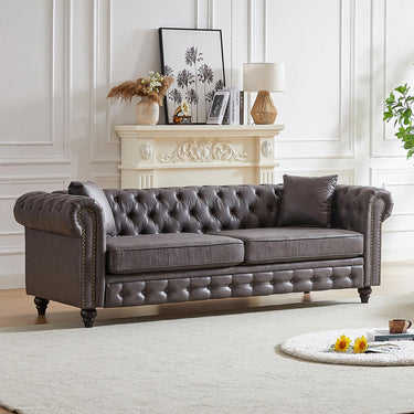 Mid Century Modern Couch,85.5" High-tech Fabric Button Tufted Oversized Loveseat Sofa w/ Nailhead Trim&Roll Armrest,Upholstered Comfy Deep Seat Chesterfield Sofa for Living Room,Office(3 Seater,Brown)