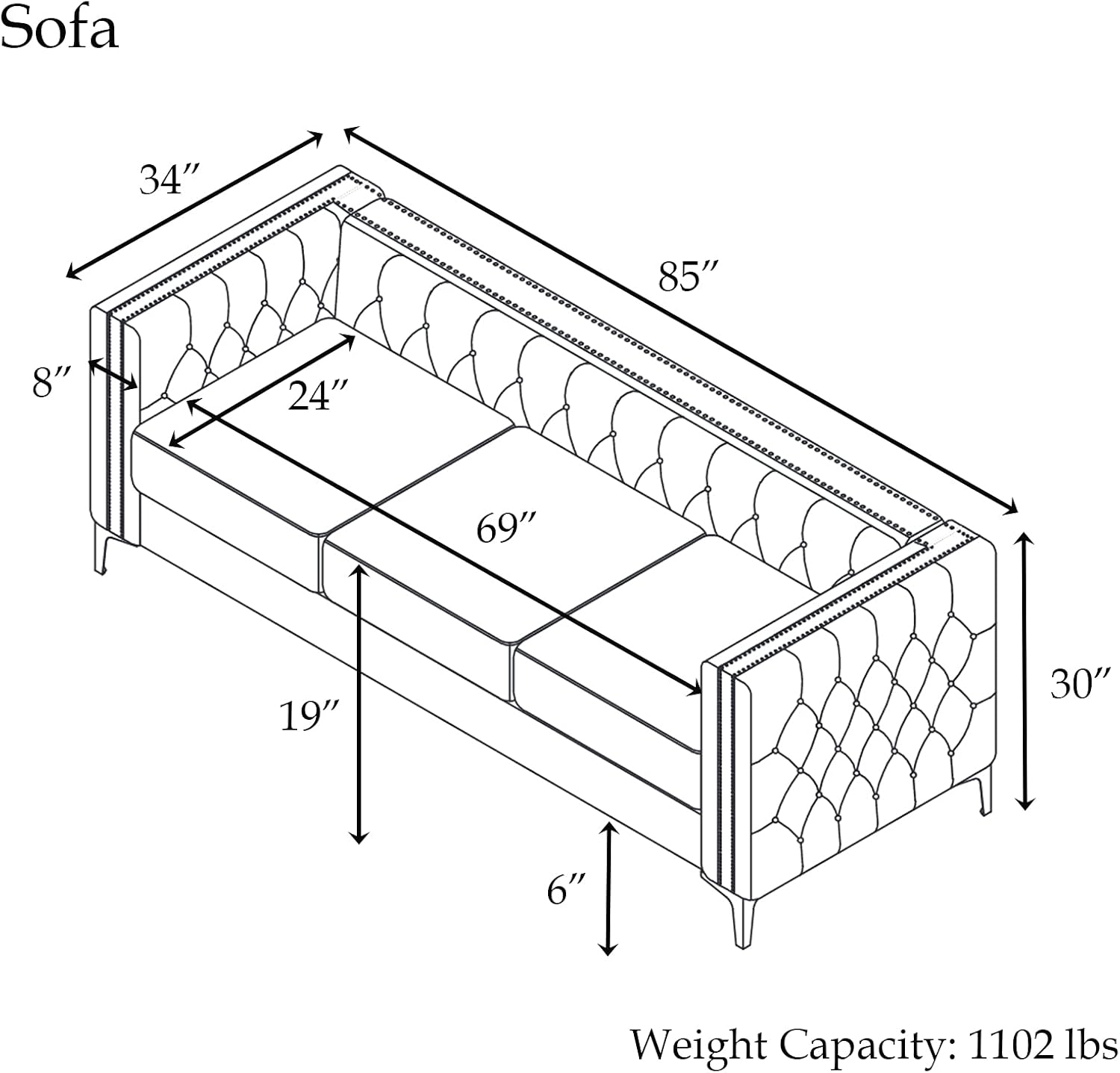 - STRONG CONSTRUCTION: Our tufted couch features a premium wood frame with high-density foam on the seat and back for long-lasting comfort and support. With four metal legs, it is able to hold up to 330 pounds per seat for a sturdy construction. Its durable design ensures long-lasting resilience and stability.