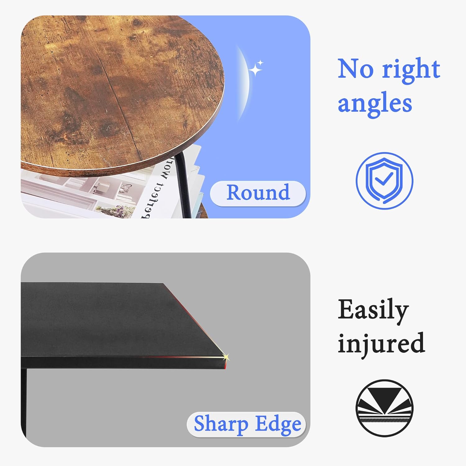 - 【Sturdy and Durable】The tabletop features a smooth, vintage-style wood panel, with each shelf supporting up to 50 pounds. A premium metal frame and three support points enhance the small round table's load-bearing capacity while maintaining its lightweight and easy-to-move design.