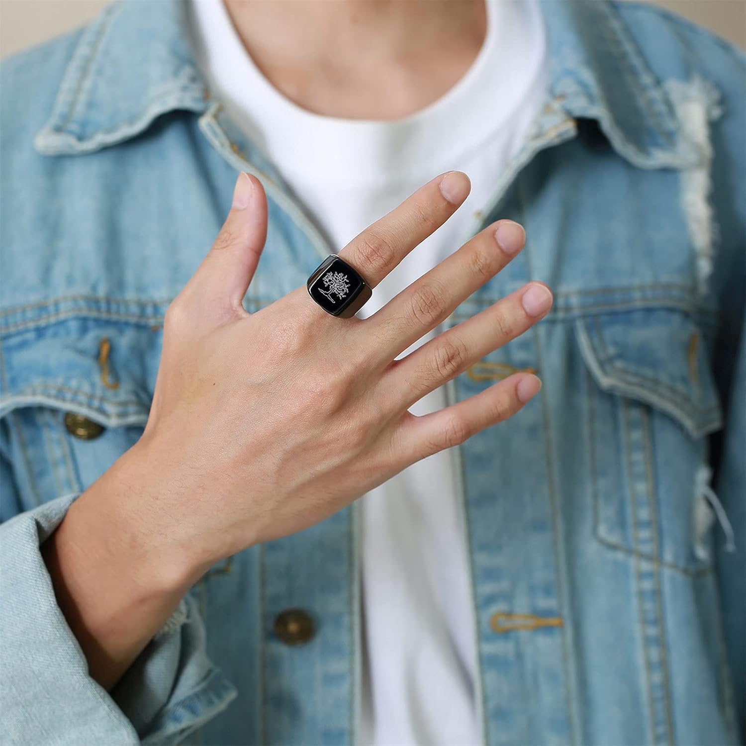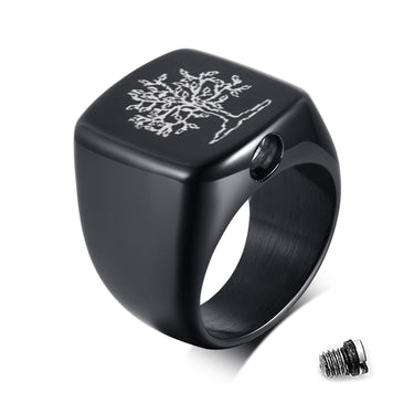 Tree of Life Cremation Urn Men Rings,Hold Loved Ones Ashes for Funeral Keepsake,Memorial Jewelry,with Tool (7)