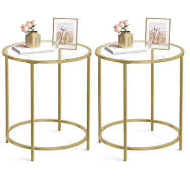 VASAGLE Round Side Table, Glass End Table with Metal Frame, Gold Coffee Table with Modern Style, for Living Room, Balcony, Bedroom, Gold Color