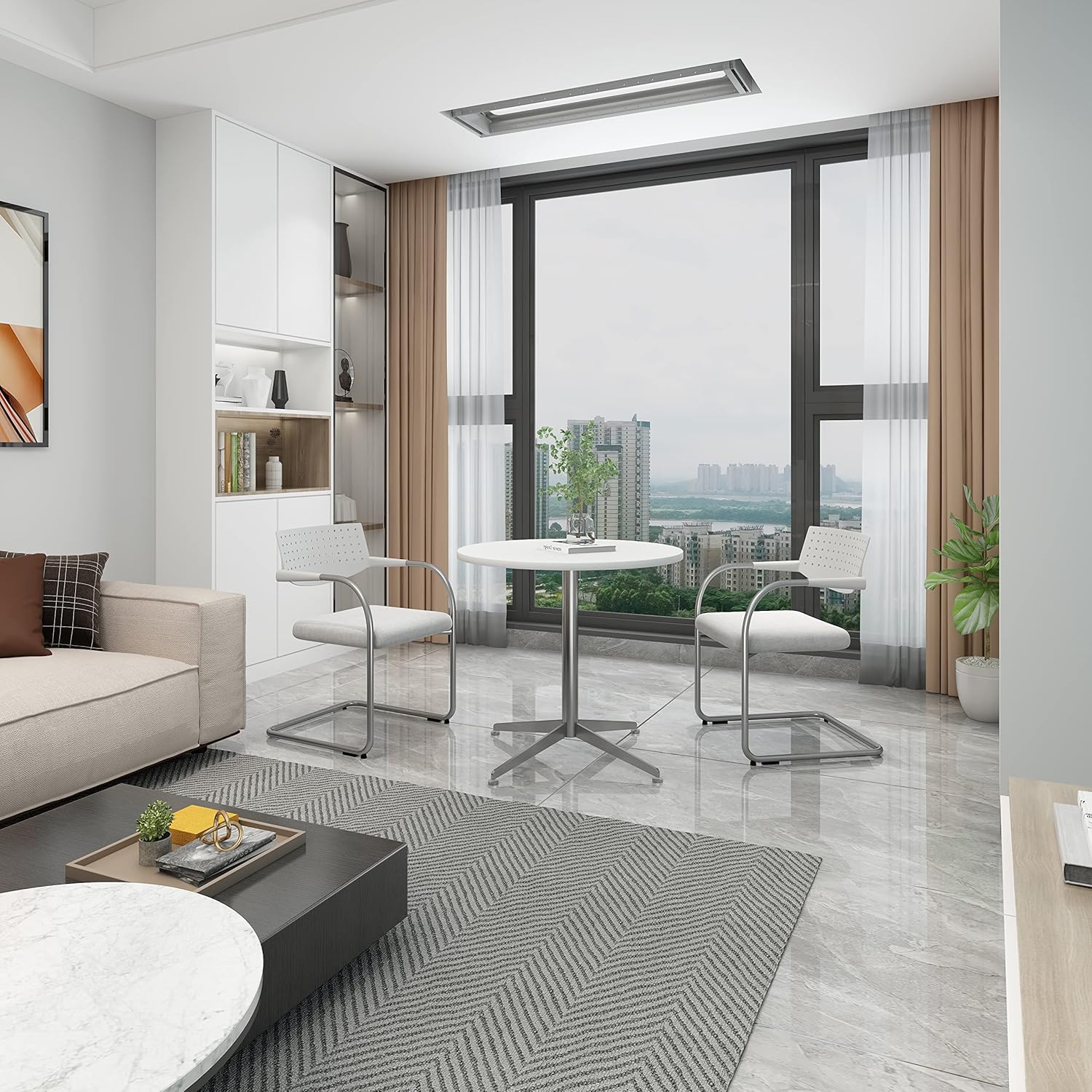 White Dining Table Round Small Office Table Conference Table Coffee Meeting Table w/Stainless Steel X-Shaped Pedestal for Office Boardroom Kitchen Living Room 31.5 inch