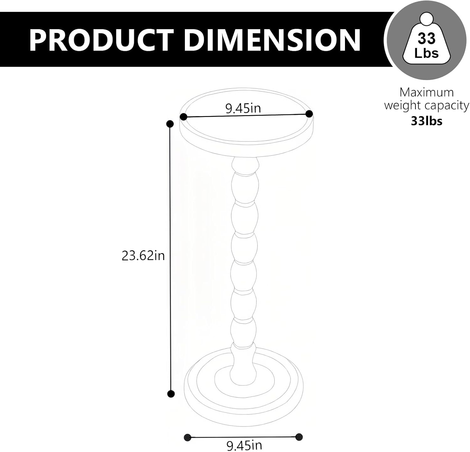 - 【Round Shaped Design & Space-Saving】This side table features a unique heart-shaped top that adds a cute, personalized touch to your space perfect for users who love stylish, decorative furniture. With precise dimensions:9.44"D (base) x 9.44"D (tabletop) x 24.62"H, and only 0.1 square meters of floor space, it fits easily in tight spots like sofa gaps, bedroom corners, or balcony nooks no more wasting valuable space in small apartments or dorms. Supports up to 33LBS, enough for daily items like lamps, books, or potted plants.