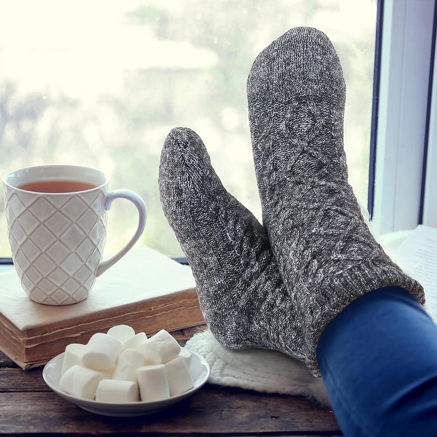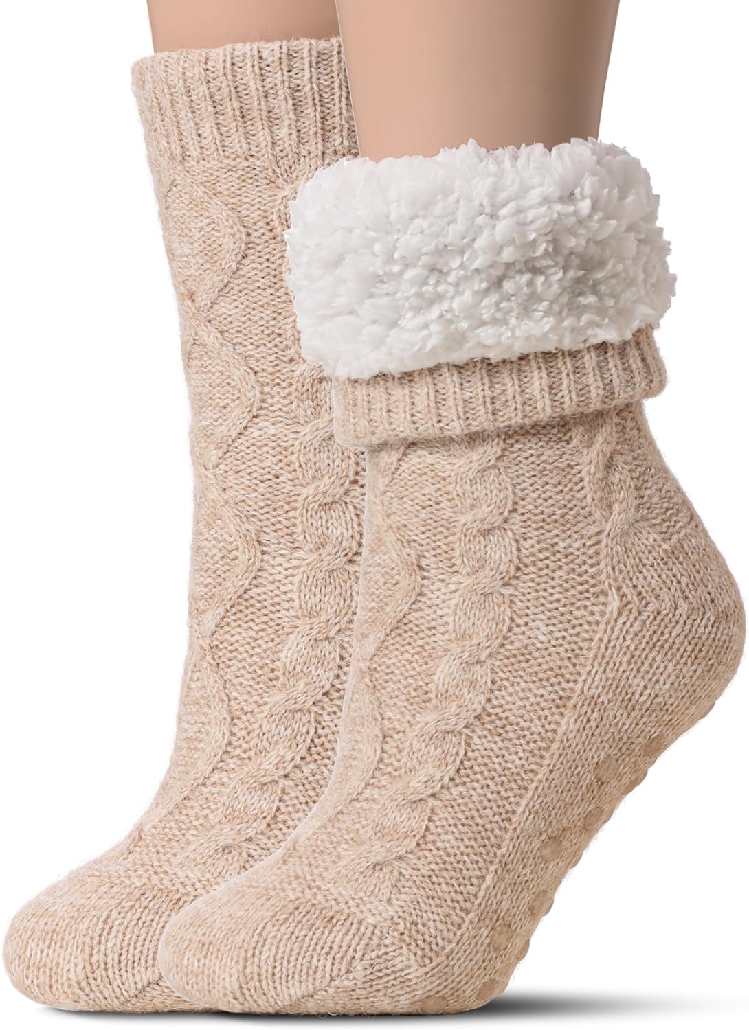 جورابهای نرم و پشمی با چسبهای ضد لغزش برای جلوگیری از سر خوردن و سقوط، با کیفیت بالا و بستهبندی شده، هدیهای عالی برای کریسمس برای دوستان، خانواده و سالمندان!