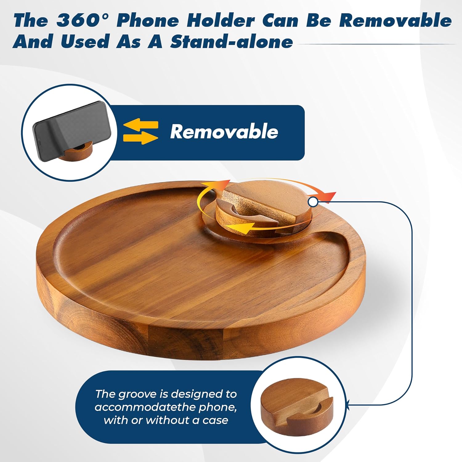 - 📱 360° Rotating Phone Holder: This table includes an innovative rotating base designed to securely hold your smartphone, preventing accidental drops or slips. With its full rotation capability, you can easily adjust your phone to the perfect ergonomic viewing angle. The versatile holder accommodates phones with or without cases and can be detached for individual use as a stand-alone phone holder.