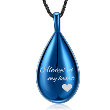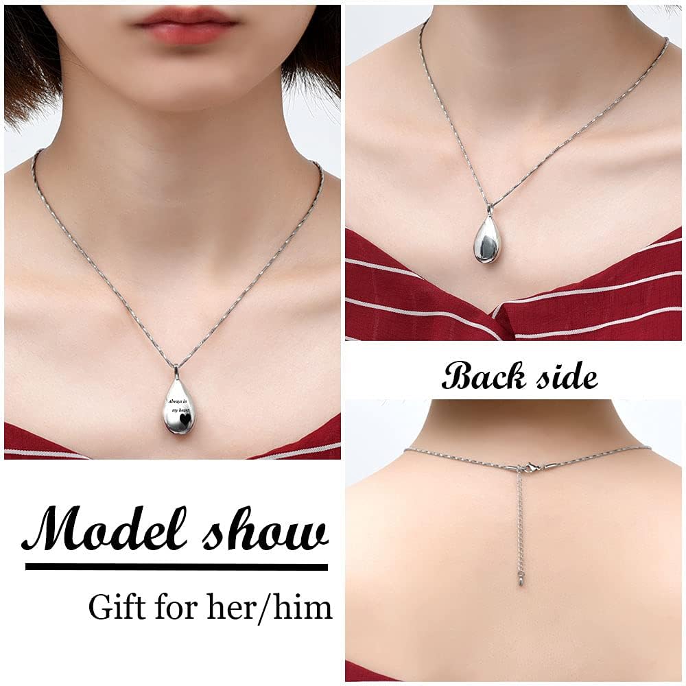 Yinplsmemory Carved Teardrop Keepsake Ashes Necklace Urn Pendant Cremation Memorial Jewelry-Always in my heart