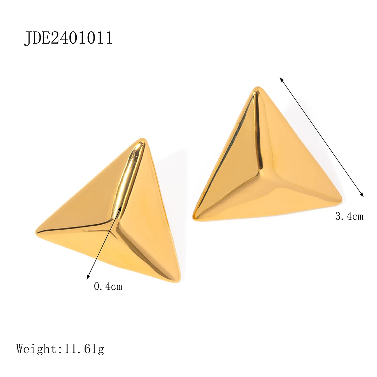 18k Gold Plated Stainless Steel Minimalist Fashion Smooth Triangle Design Earrings Prevent Allergy Trendy Charm Jewelry