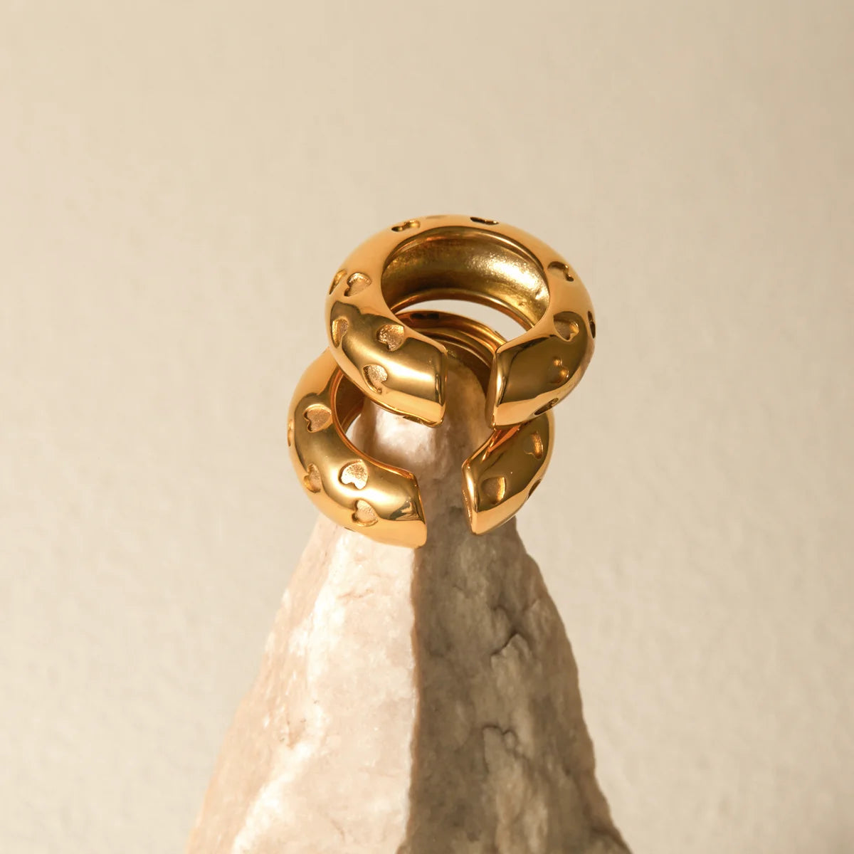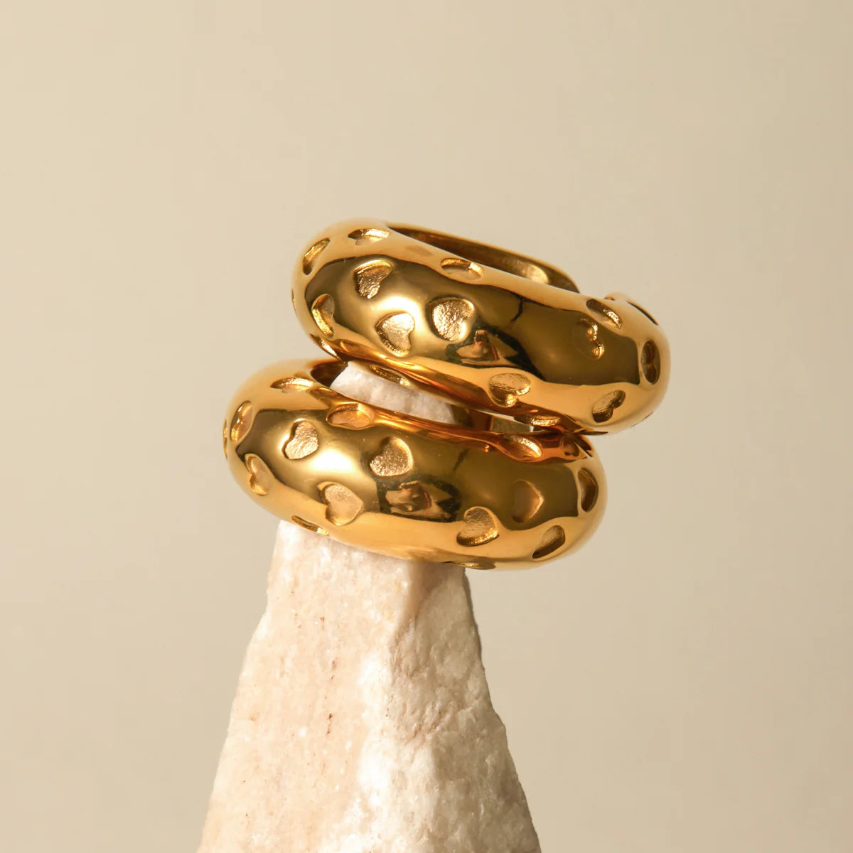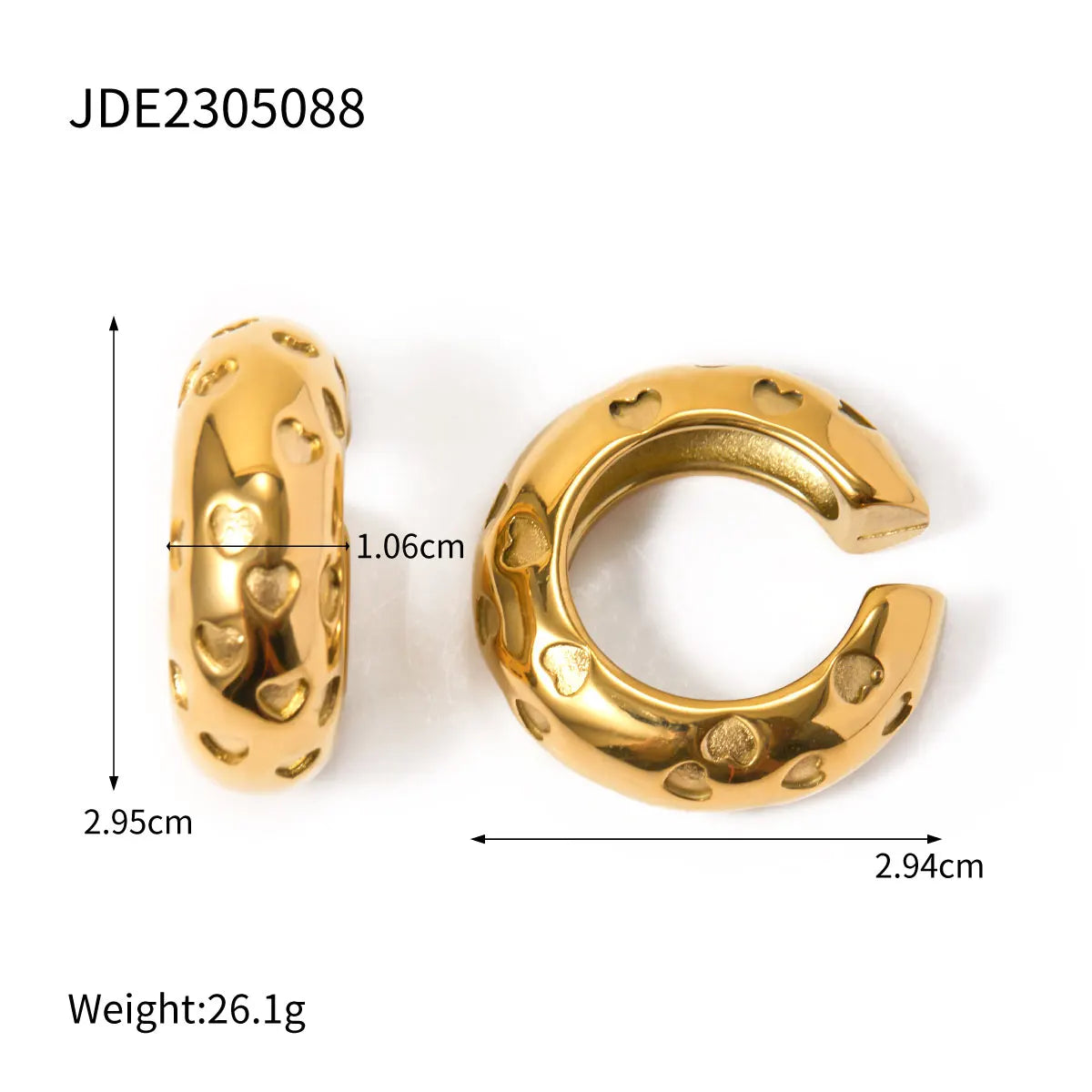 Creative Tarnish Free Stainless Steel Love Heart Hollow C - shaped Ear Clip 18K Pvd Gold Plated Metal Texture Fashion Jewelry
