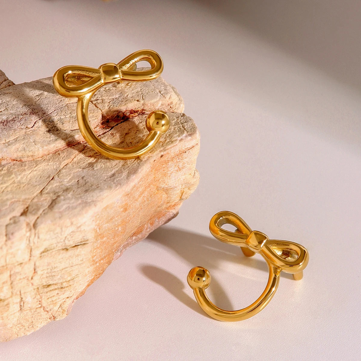 گیره گوش استخوانی زنانه با پلیت طلای 18 عیار مینیمالیستی، سبک، راحت، با پاپیون، جذاب، از جنس استیل ضد زنگ، ضد آب، جواهرات فردگرا
