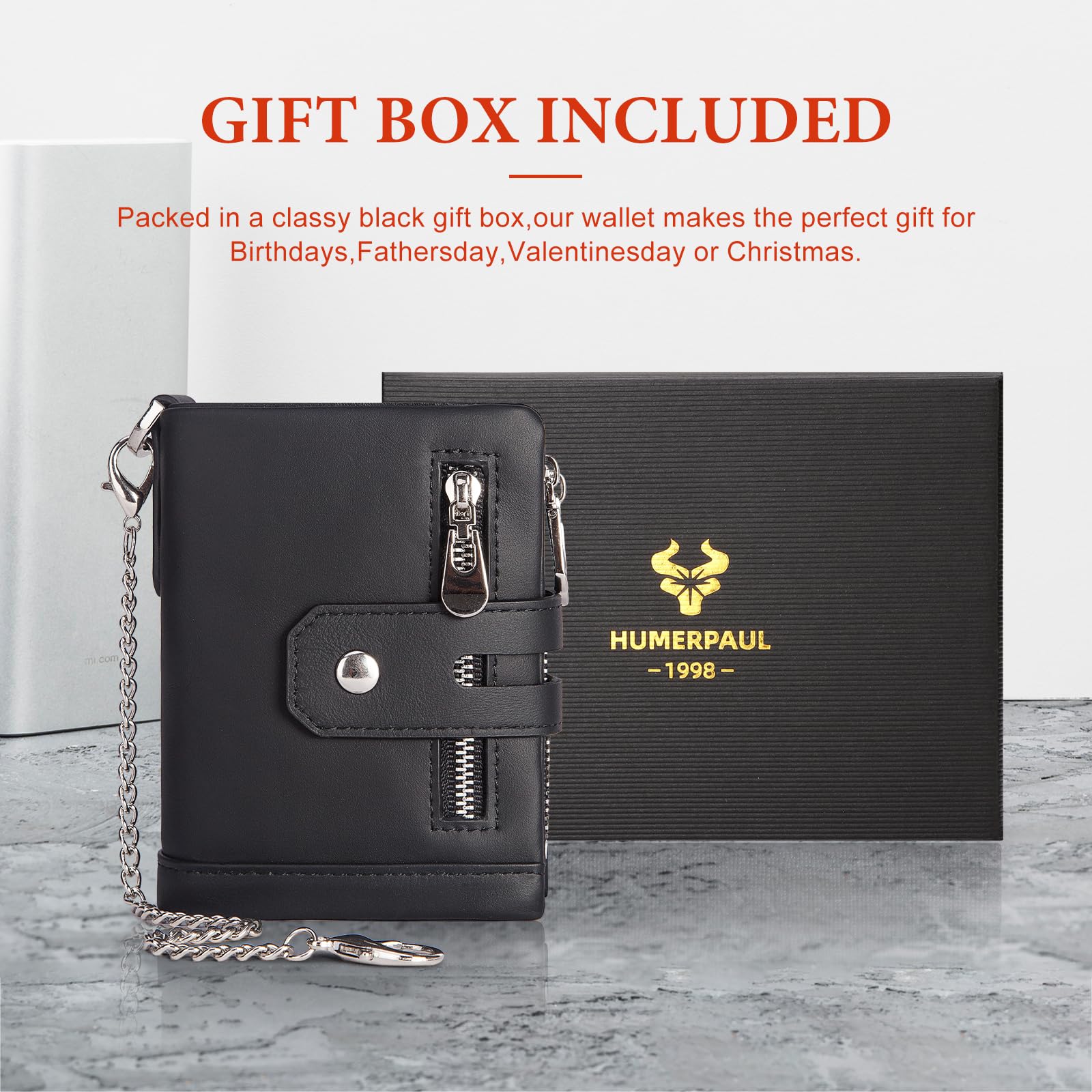 - هدیه ایدهآل برای مردان -- این کیف پول RFID همراه با یک جعبه هدیه زیبا ارائه میشود، که آن را به هدیهای کامل برای کسی خاص تبدیل میکند. طراحی کلاسیک و کاربردی کیف پول چرمی برای مردان. کیف پول مردانه با زنجیر مناسب برای مردان در هر سنی در محل کار، نخبگان، هدیه روز پدر، روز ولنتاین، سالگرد، تولد، کریسمس و غیره است.