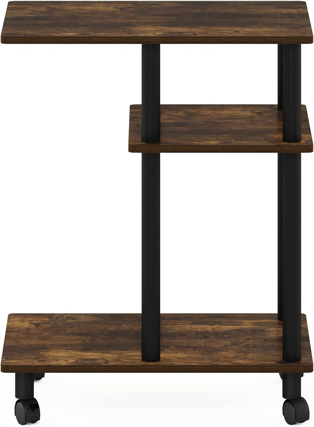 Furinno Turn-N-Tube C Shaped Side Table with Casters, Amber Pine/Black