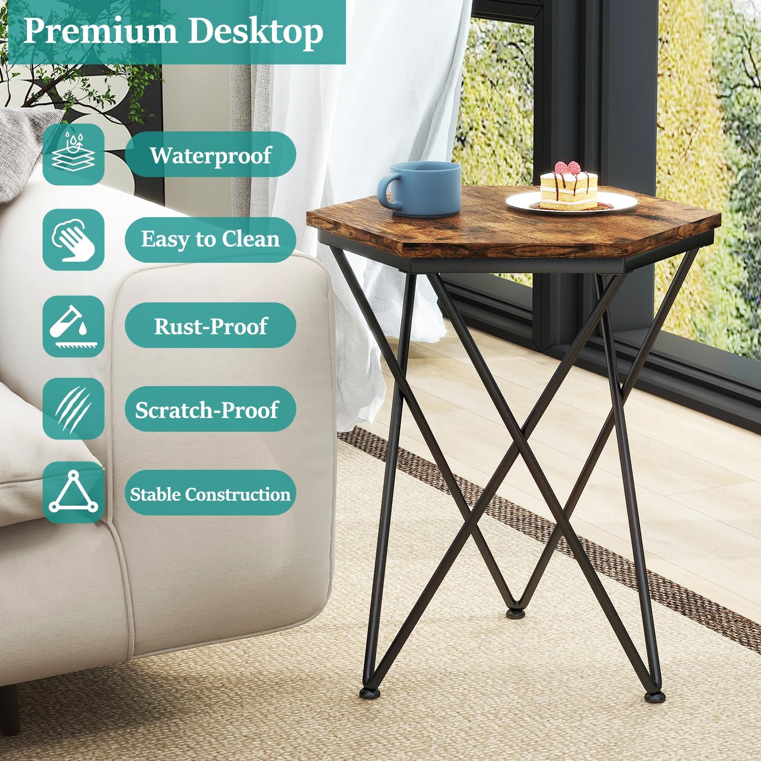 - 【STURDY METAL FRAME STRUCTURE】This sofa side table is supported by a sturdy metal frame in a cross X design for added stability, allowing the table to stand firmly wherever it is placed. In addition, the non-slip feet protect the floor from scratches and extend its life.