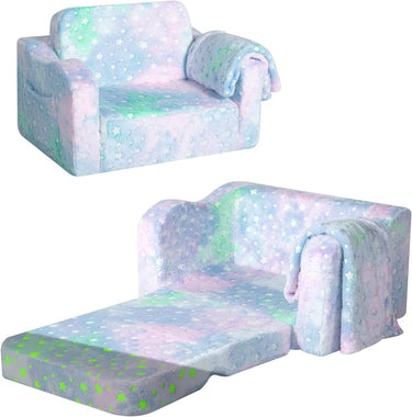 مبل دایناسور کودکان MeMoreCool، صندلی تاشو کودک با قابلیت درخشش در تاریکی، مبل تختخوابشو قابل تبدیل برای اتاق بازی کودکان، صندلی راحتی کودک (خاکستری)