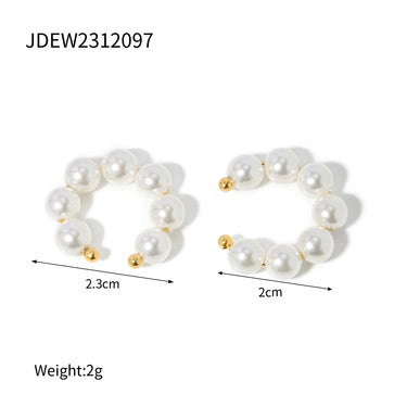 گیره گوش مروارید بزرگ مینیمالیستی به شکل C شیک 18K فولاد ضد زنگ مینیمالیستی ضد آب زنانه با کیفیت بالا бижутерия هدیه مهمانی