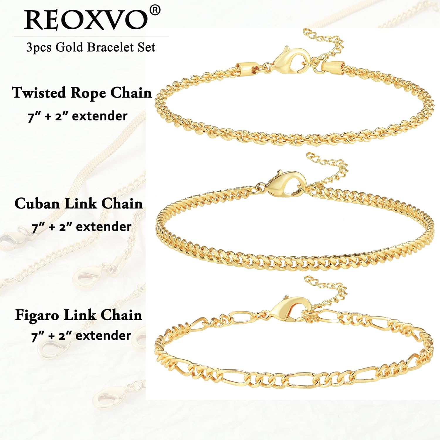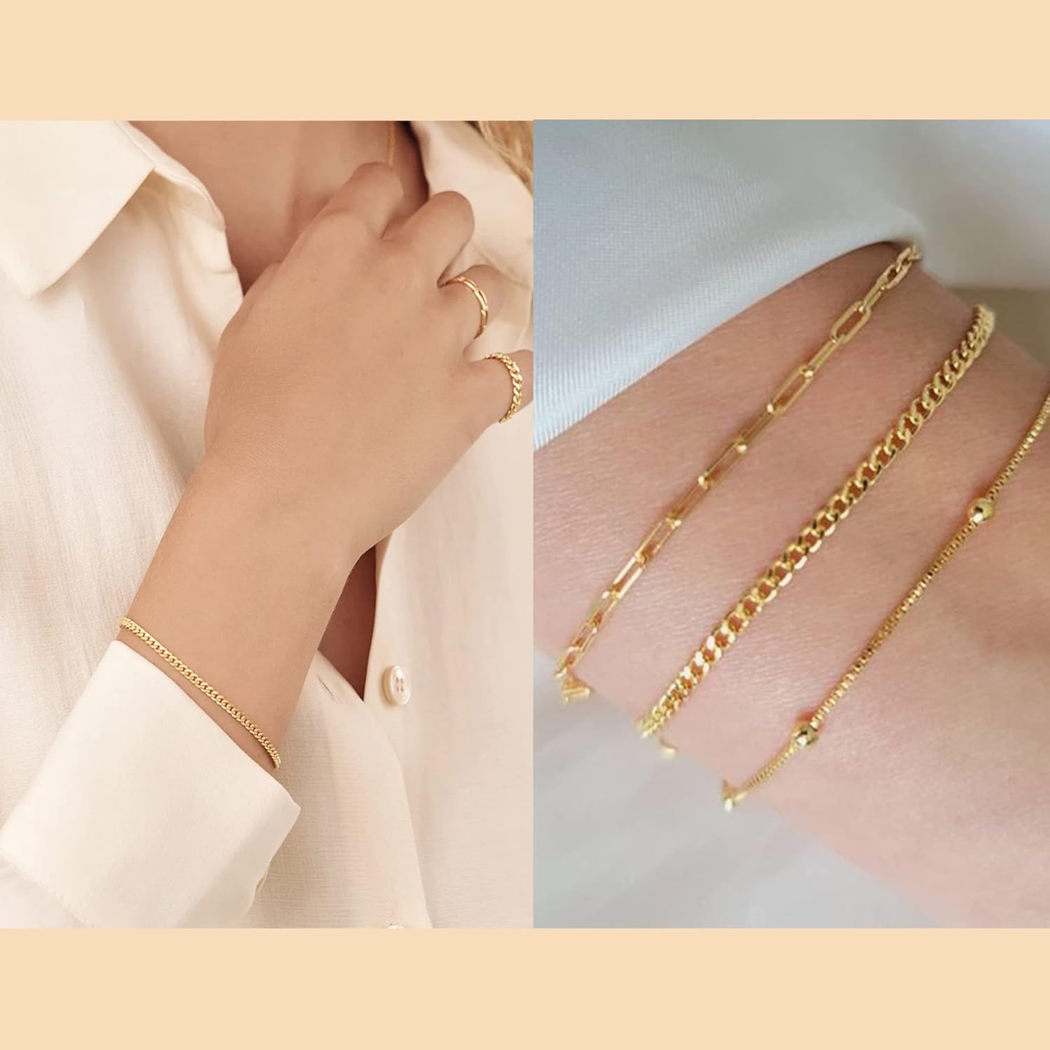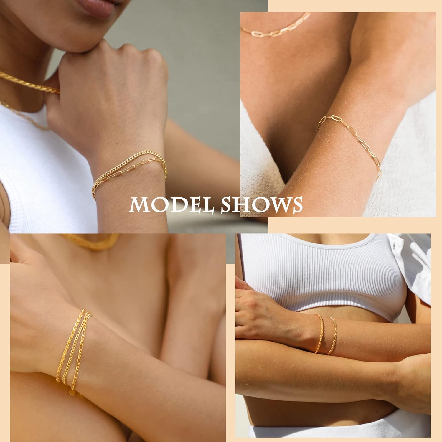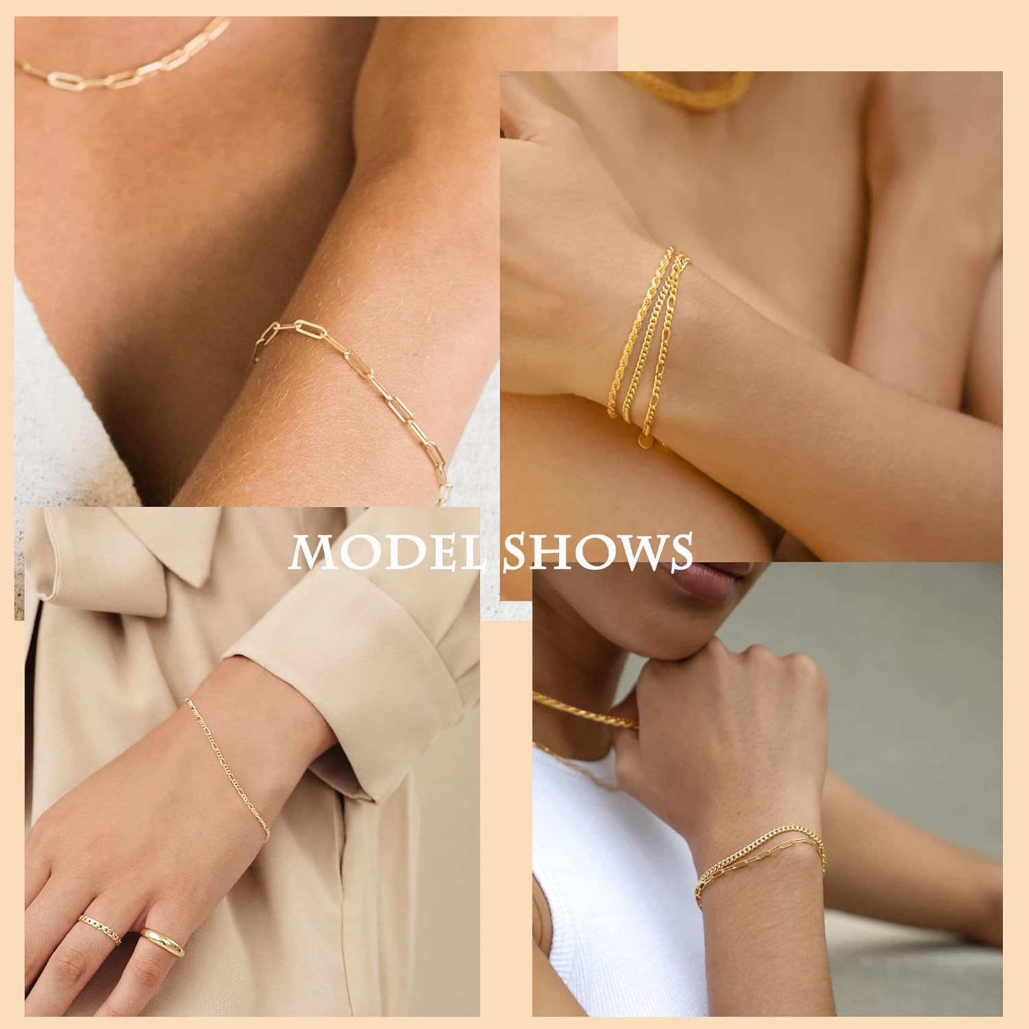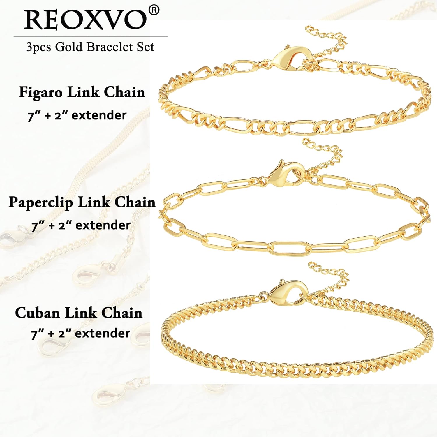 Reoxvo Bracelets délicats pour femmes tendance, ensemble de bracelets à breloques en chaîne de laiton plaqué argent sterling pour femmes, bracelets empilables en chaîne de laiton plaqué or 14 carats, bijou cadeau pour femmes
