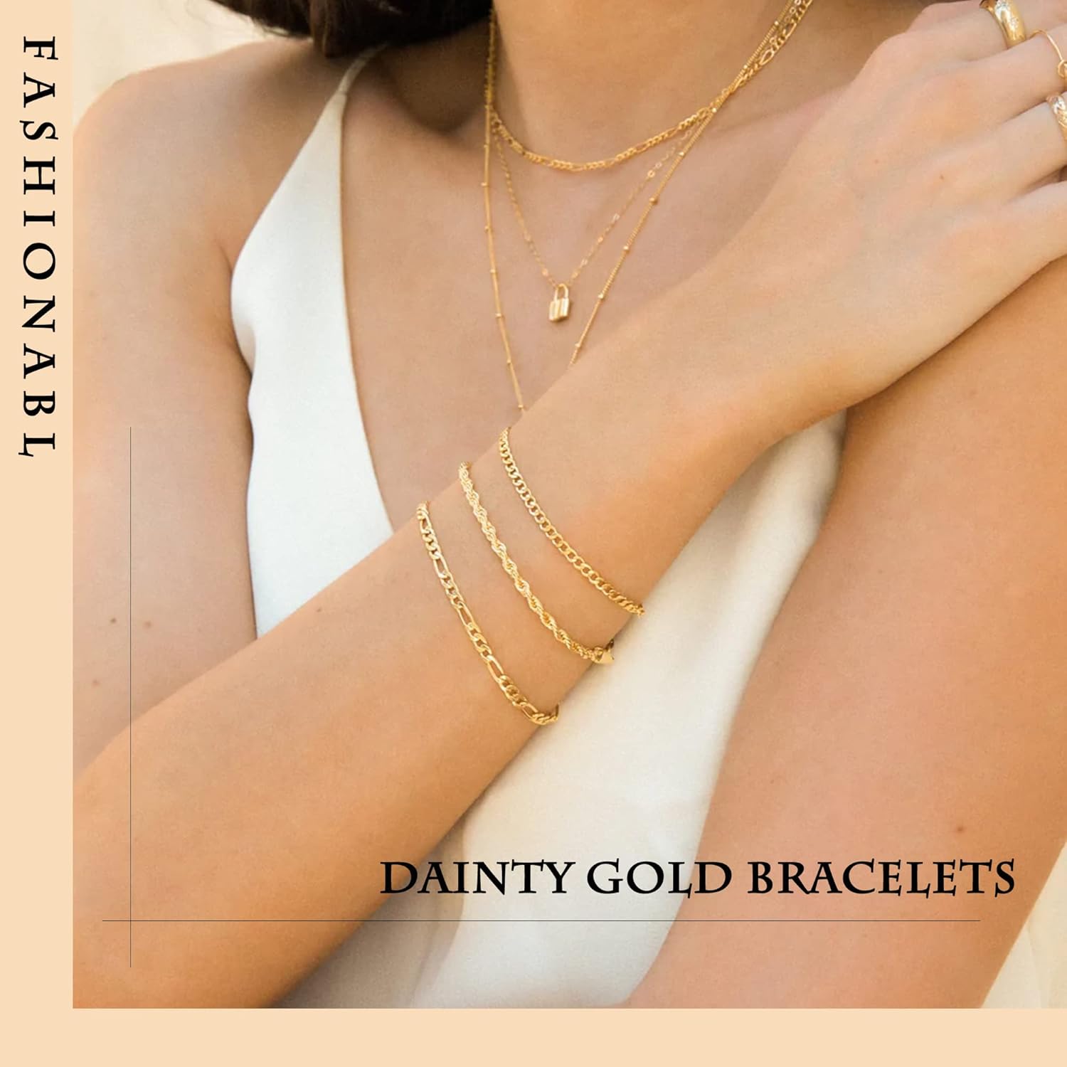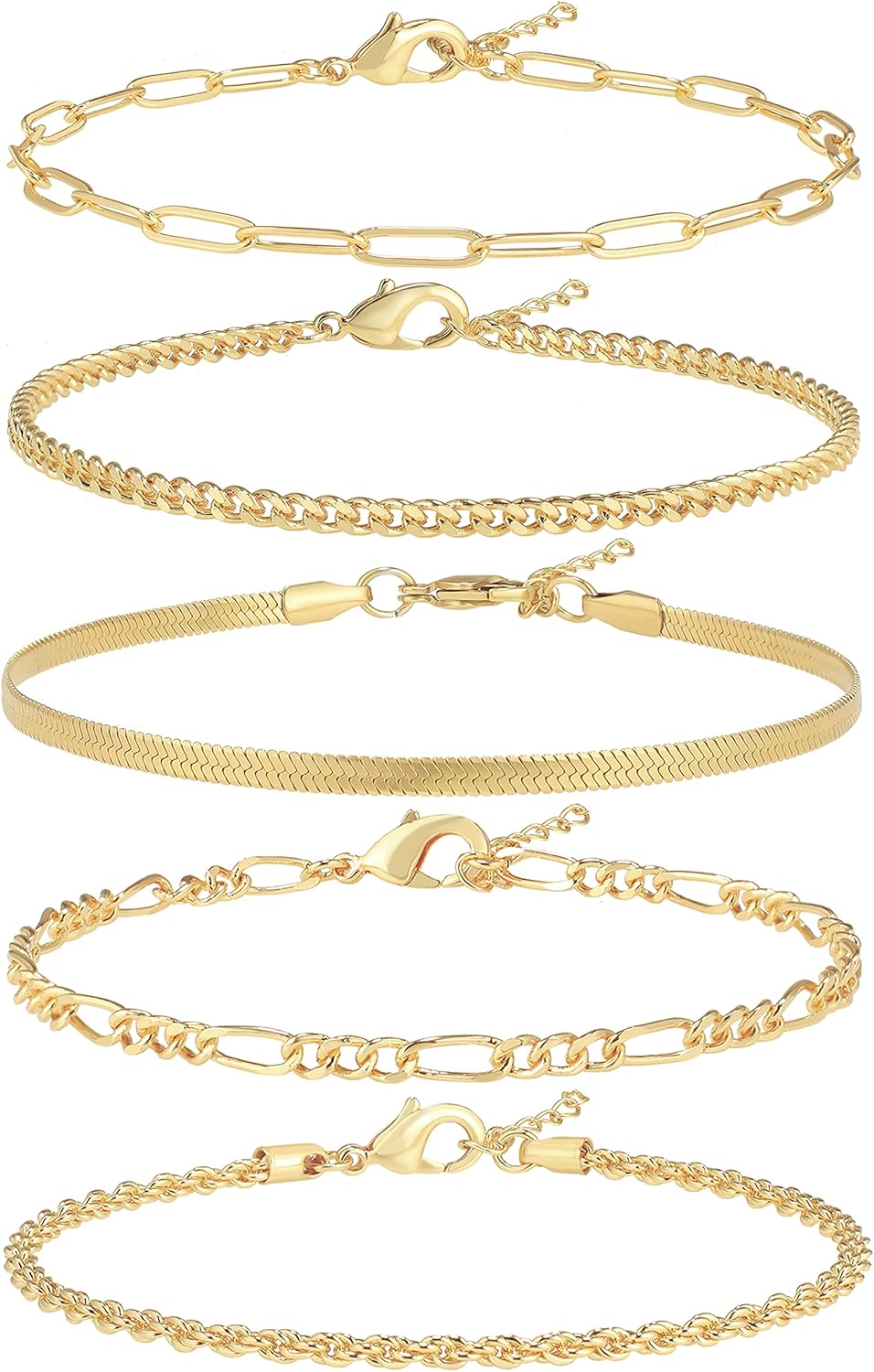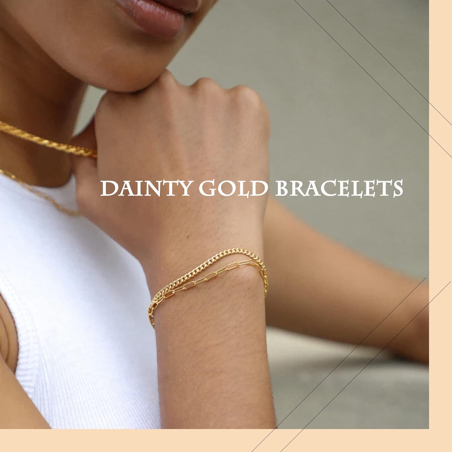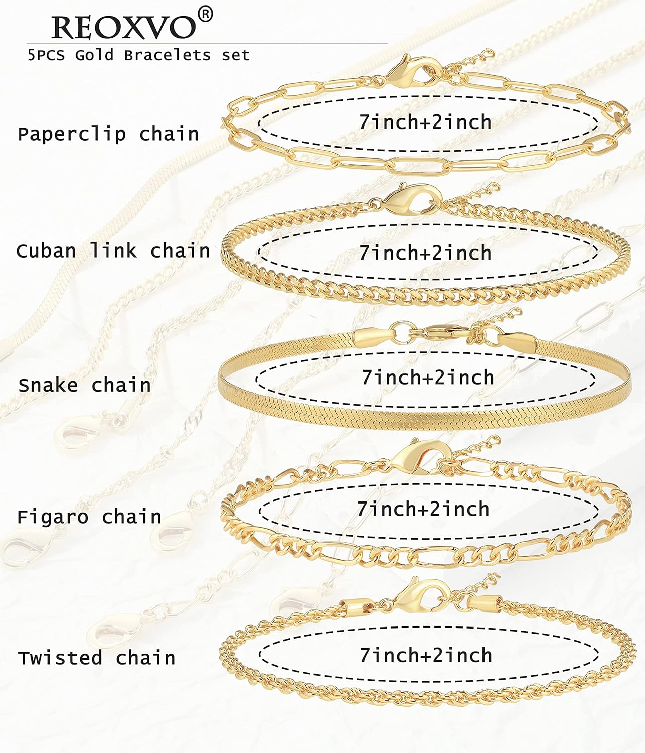Reoxvo Bracelets délicats pour femmes tendance, ensemble de bracelets à breloques en chaîne de laiton plaqué argent sterling pour femmes, bracelets empilables en chaîne de laiton plaqué or 14 carats, bijou cadeau pour femmes