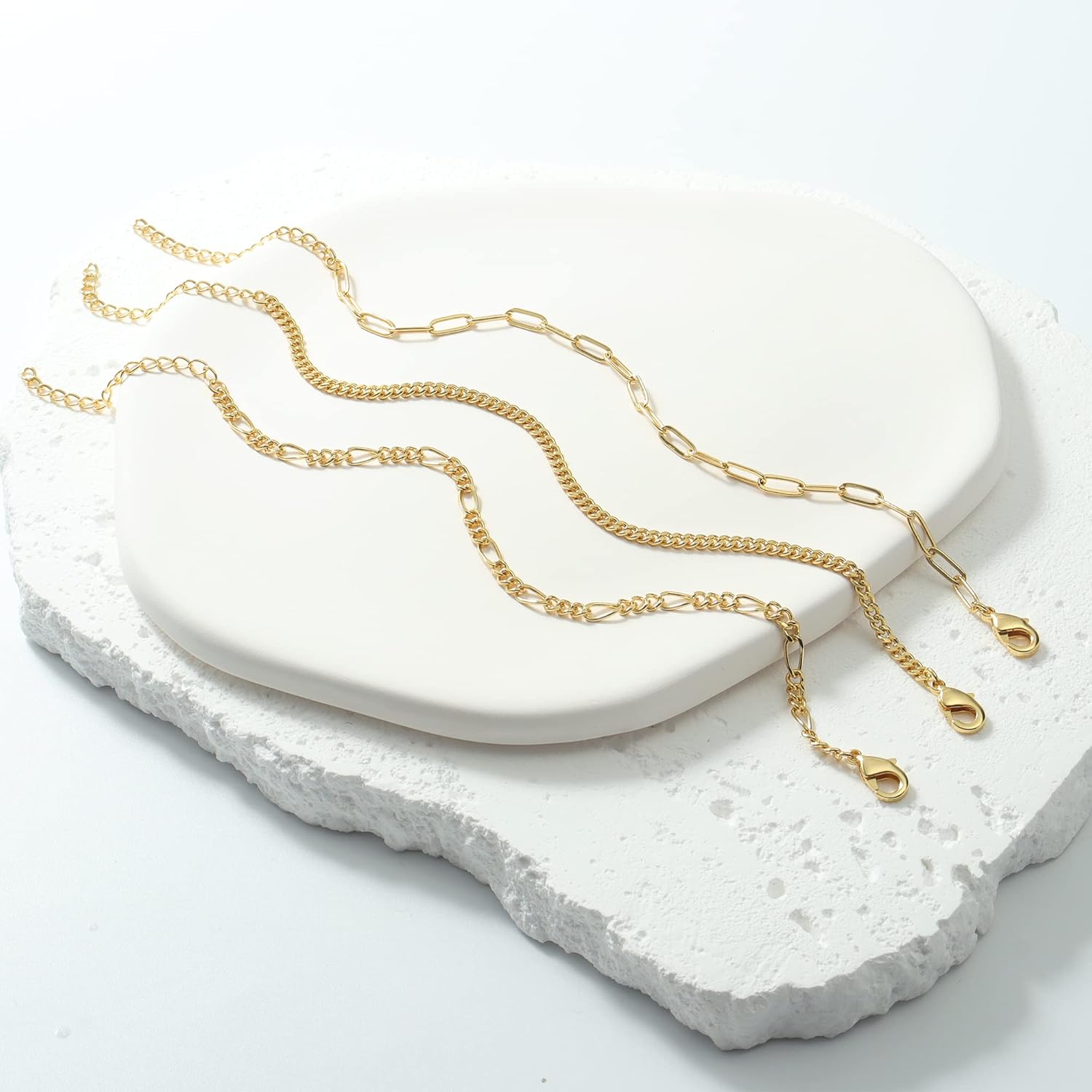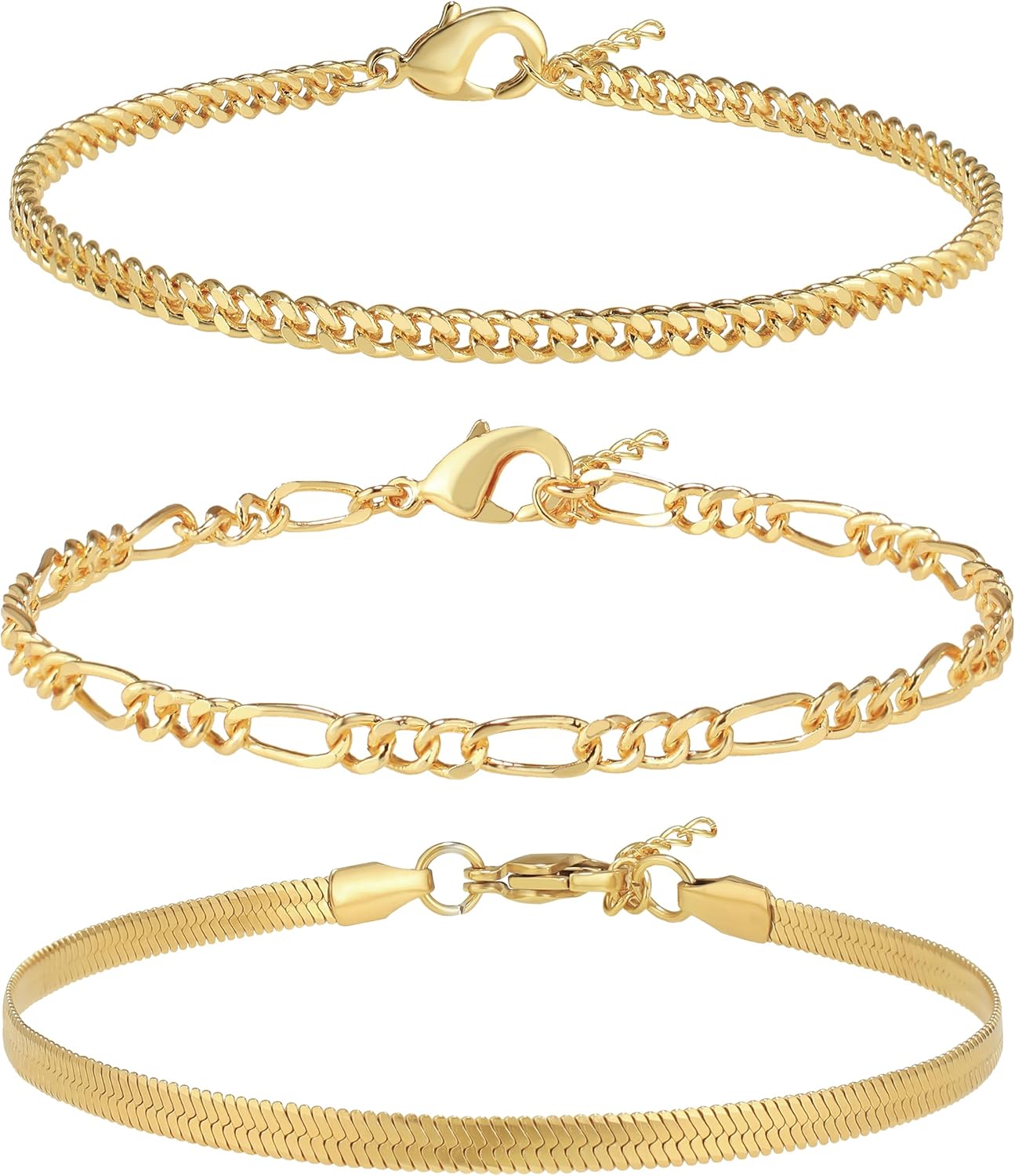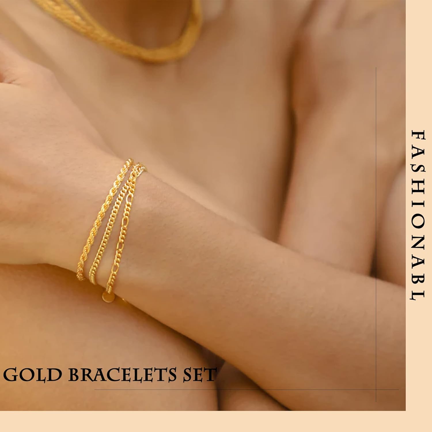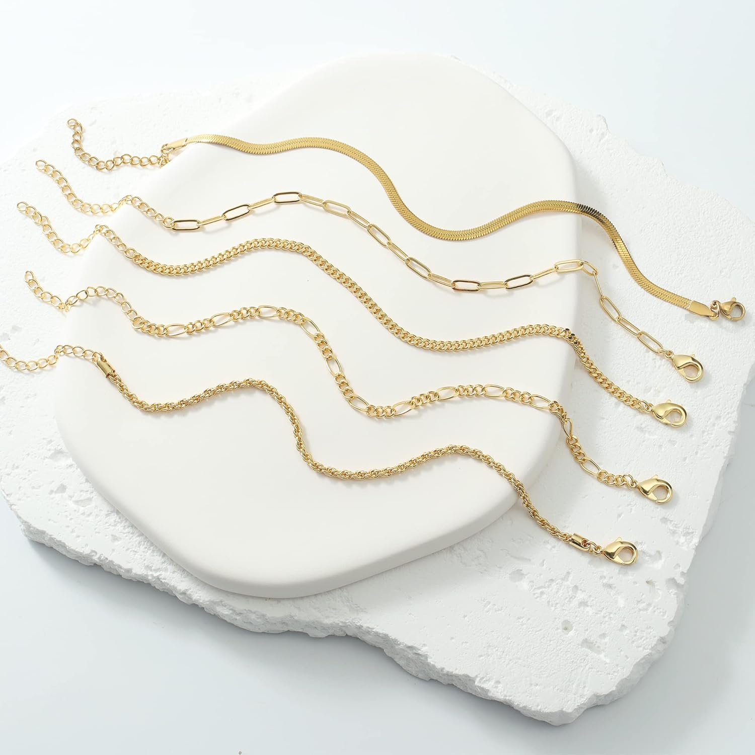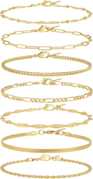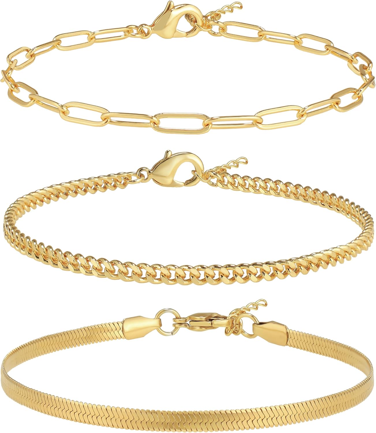 Reoxvo Bracelets délicats pour femmes tendance, ensemble de bracelets à breloques en chaîne de laiton plaqué argent sterling pour femmes, bracelets empilables en chaîne de laiton plaqué or 14 carats, bijou cadeau pour femmes