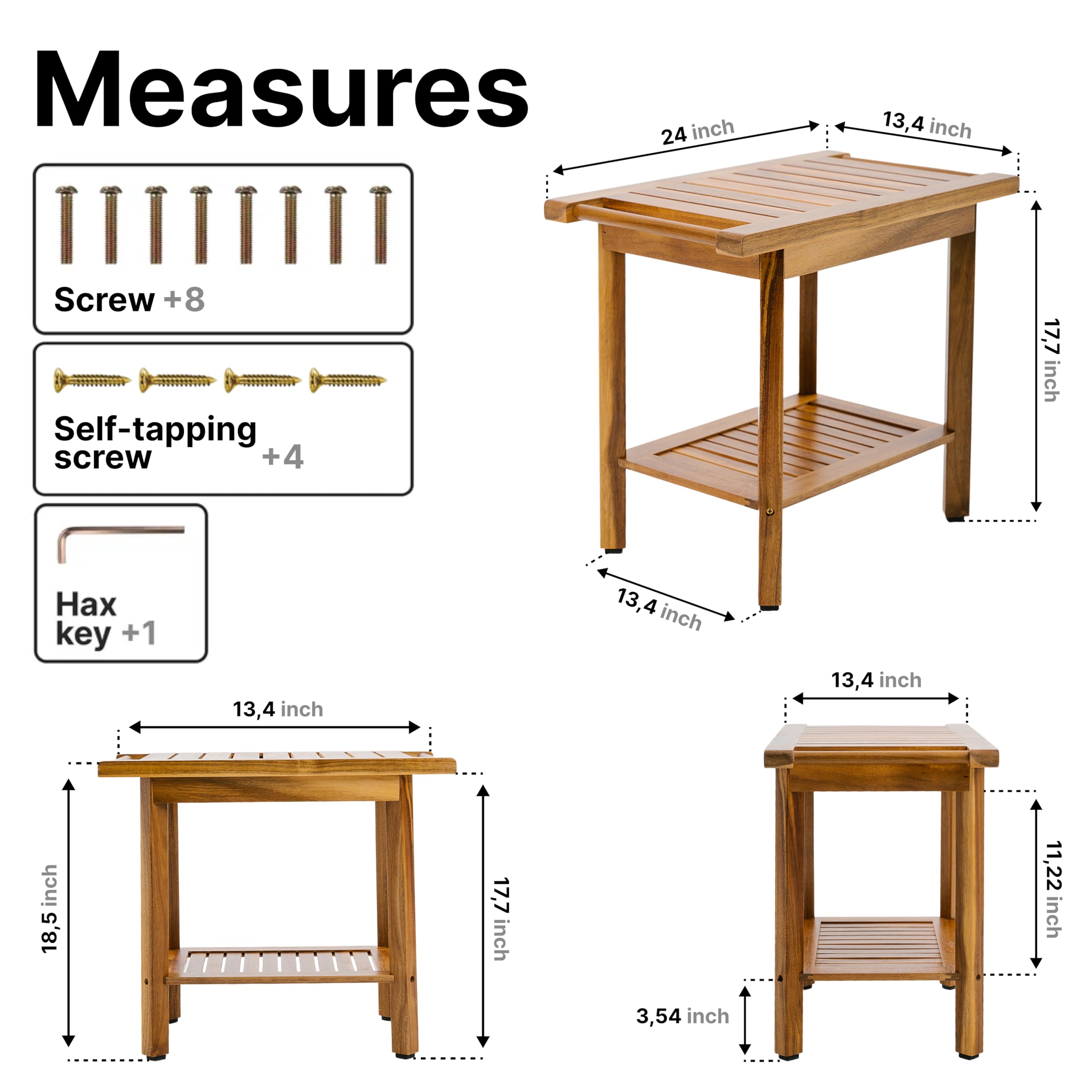 - MULTIFONCTIONNEL : Le banc en teck peut être utilisé en plusieurs occasions, par exemple : placé dans la salle de bain pour tenir serviettes et accessoires de douche en teck, ou dans le salon pour supporter un pot de fleurs, un panier à linge comme rangement ou décoration.
