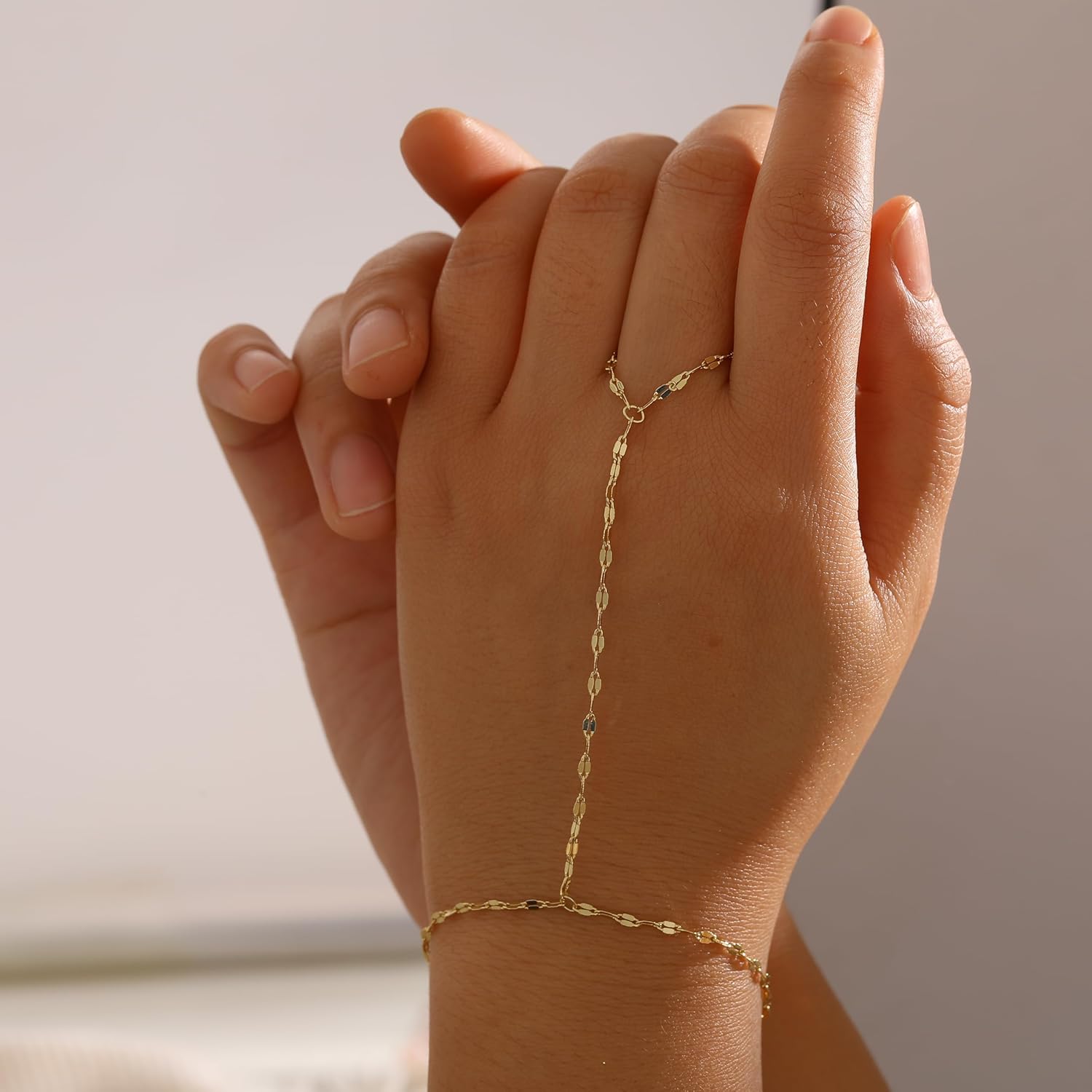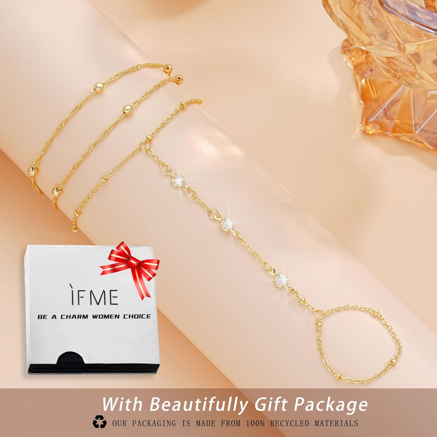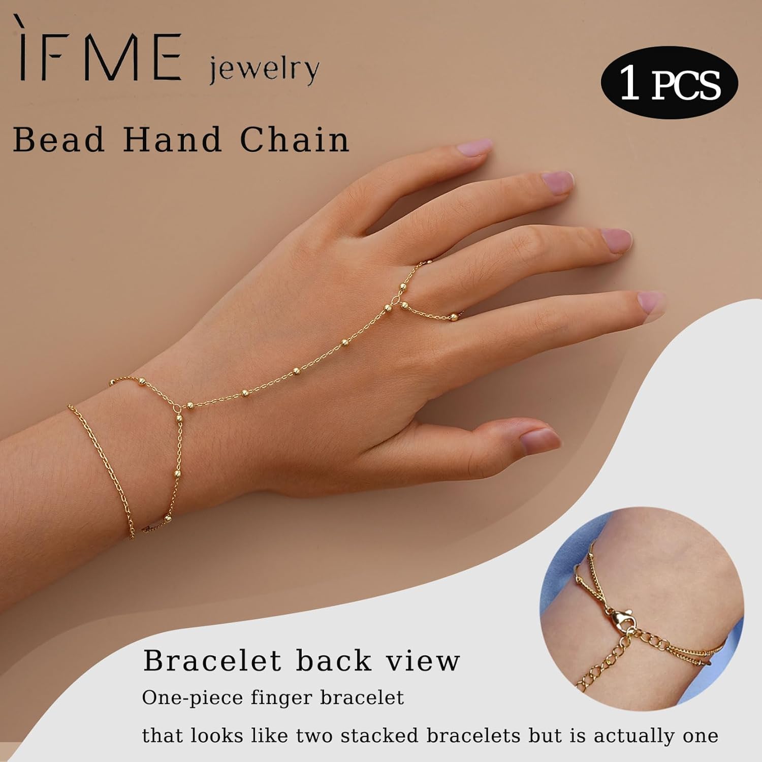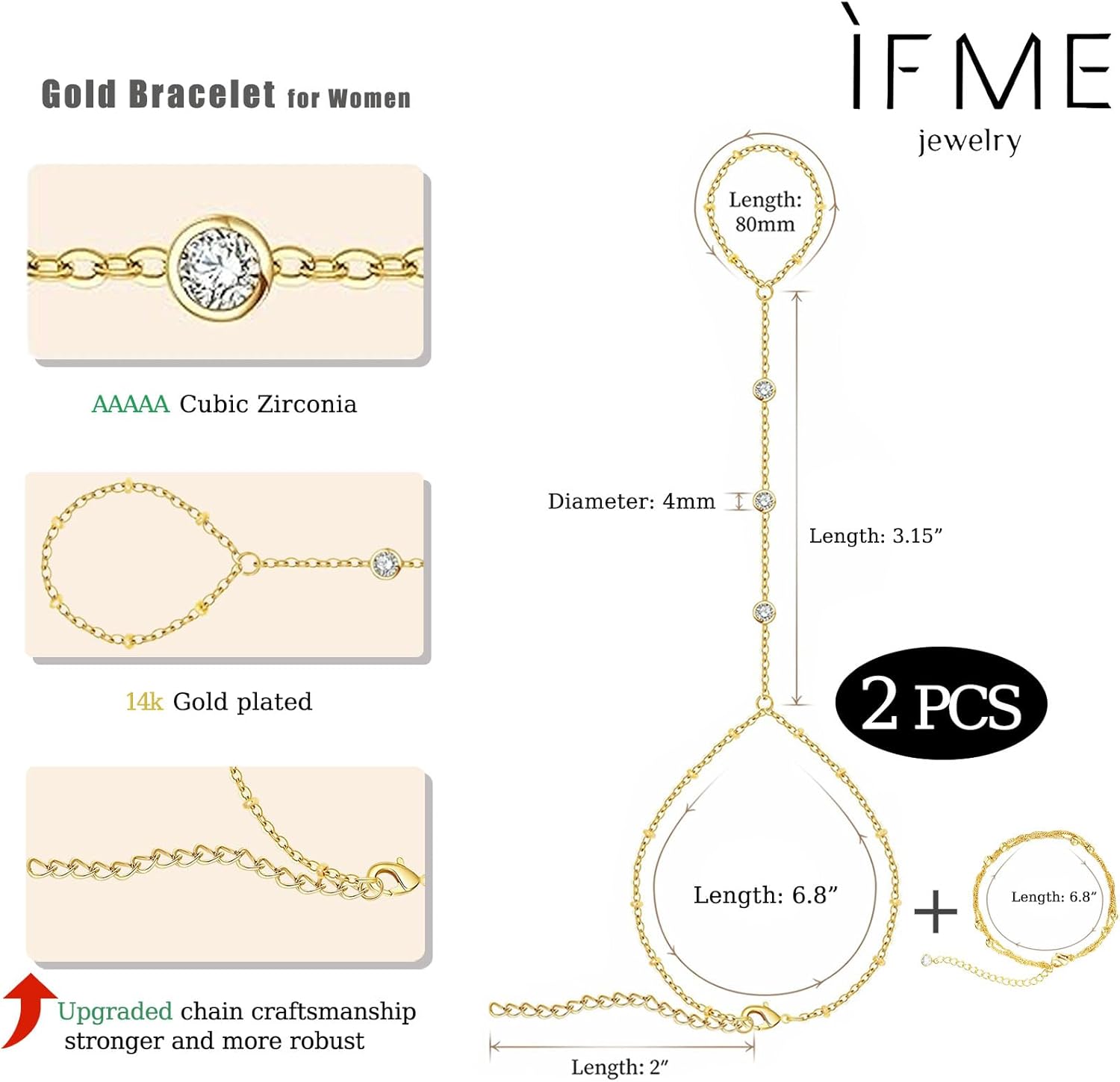 Ensemble de bracelets chaîne à main ÌF ME plaqué or 14 carats, bracelets en or durables pour femmes, bracelet de doigt ajustable, bijoux de main avec rallonge, parfait pour un usage quotidien, bague, bracelet, main