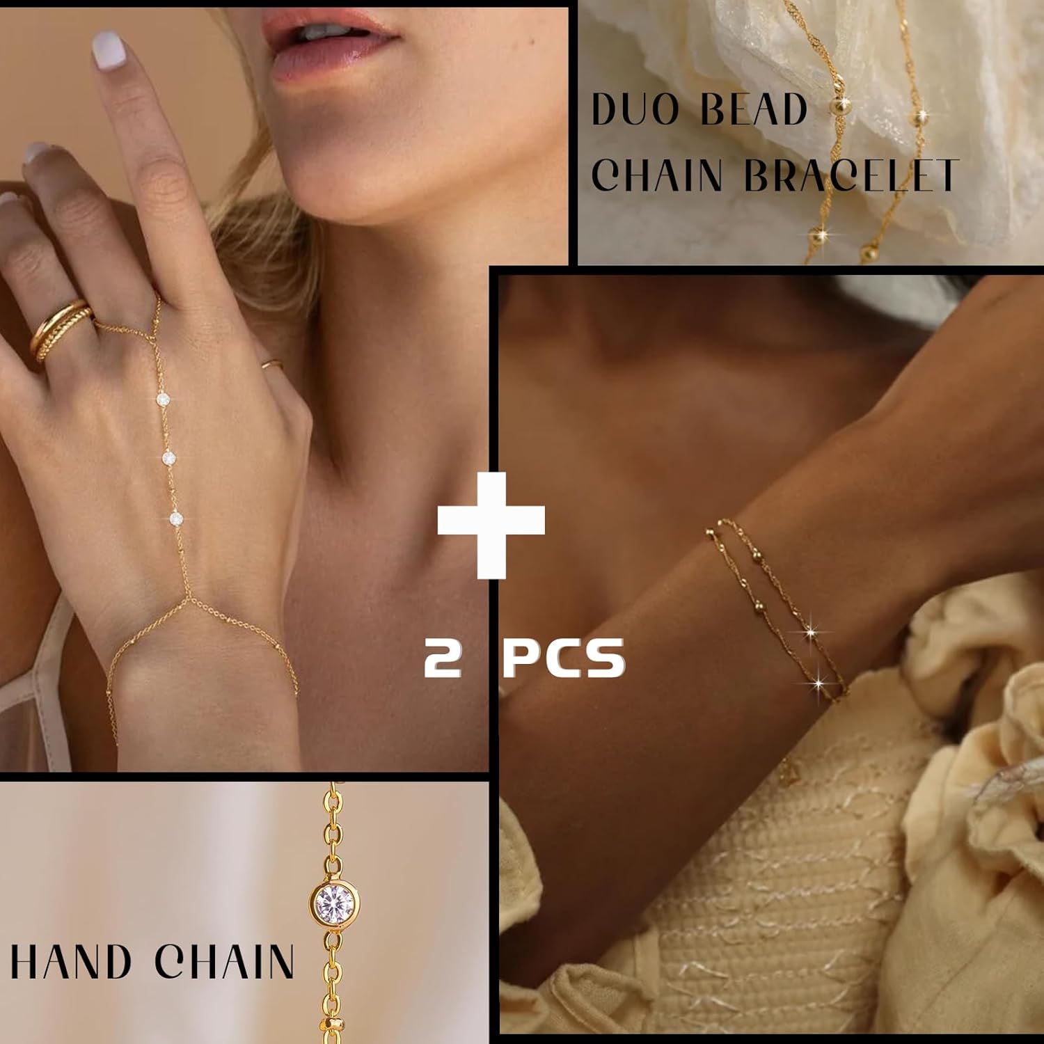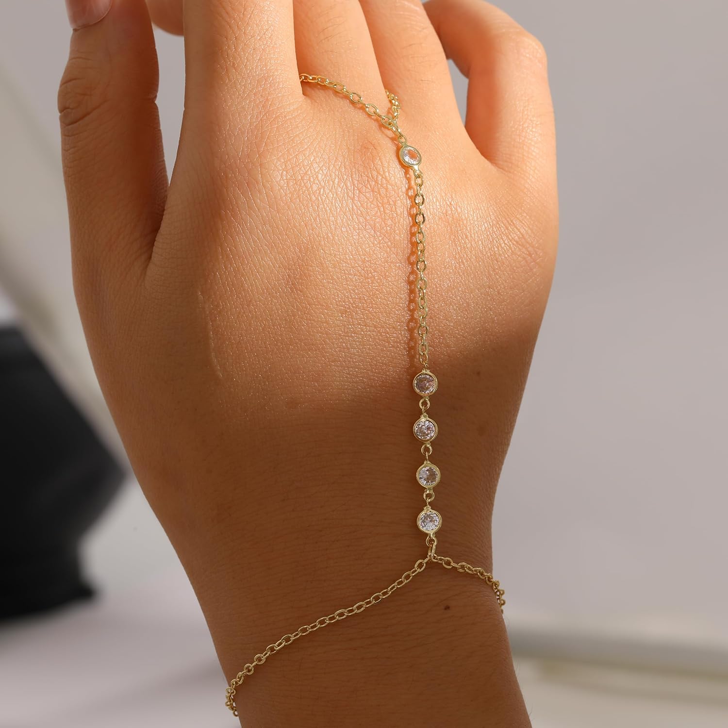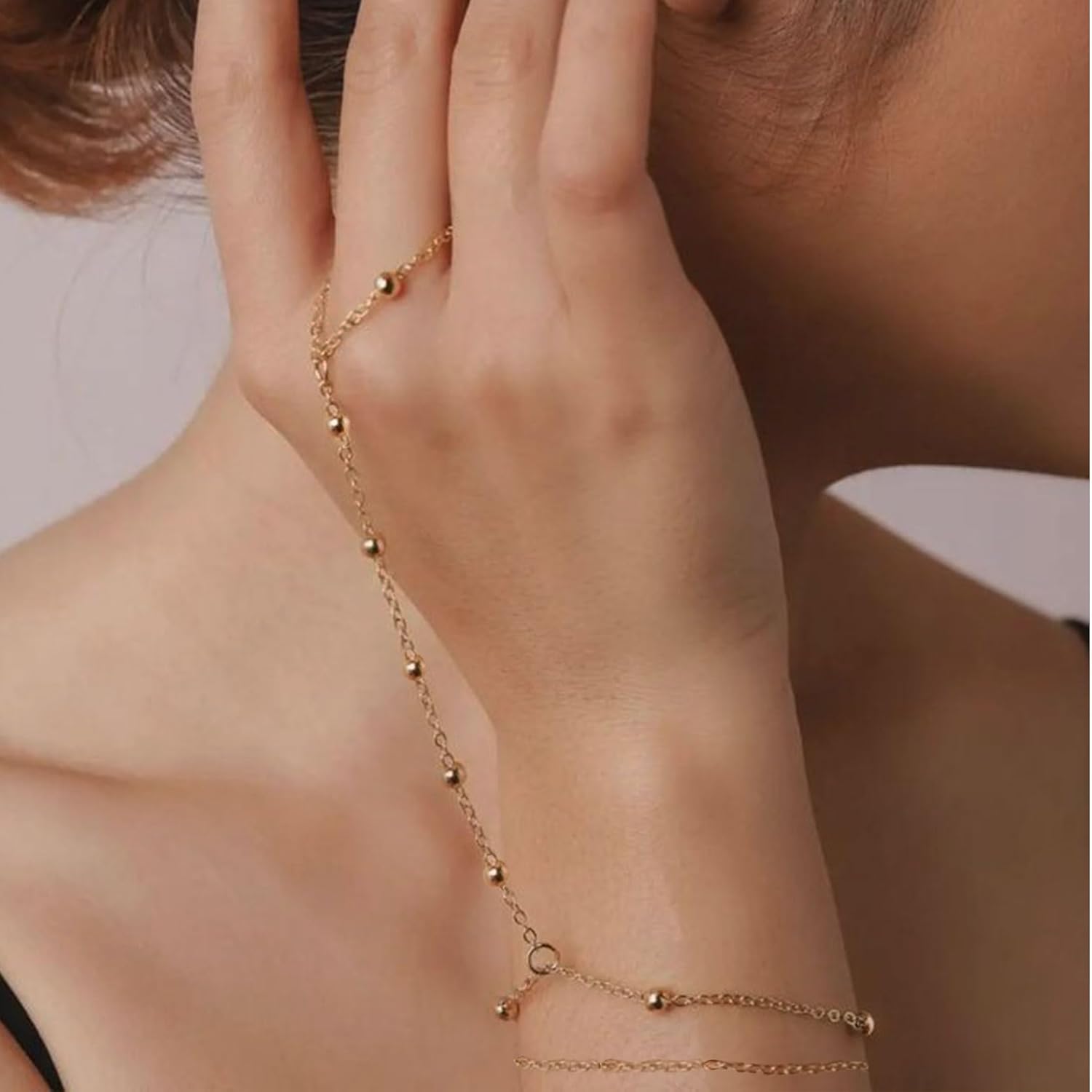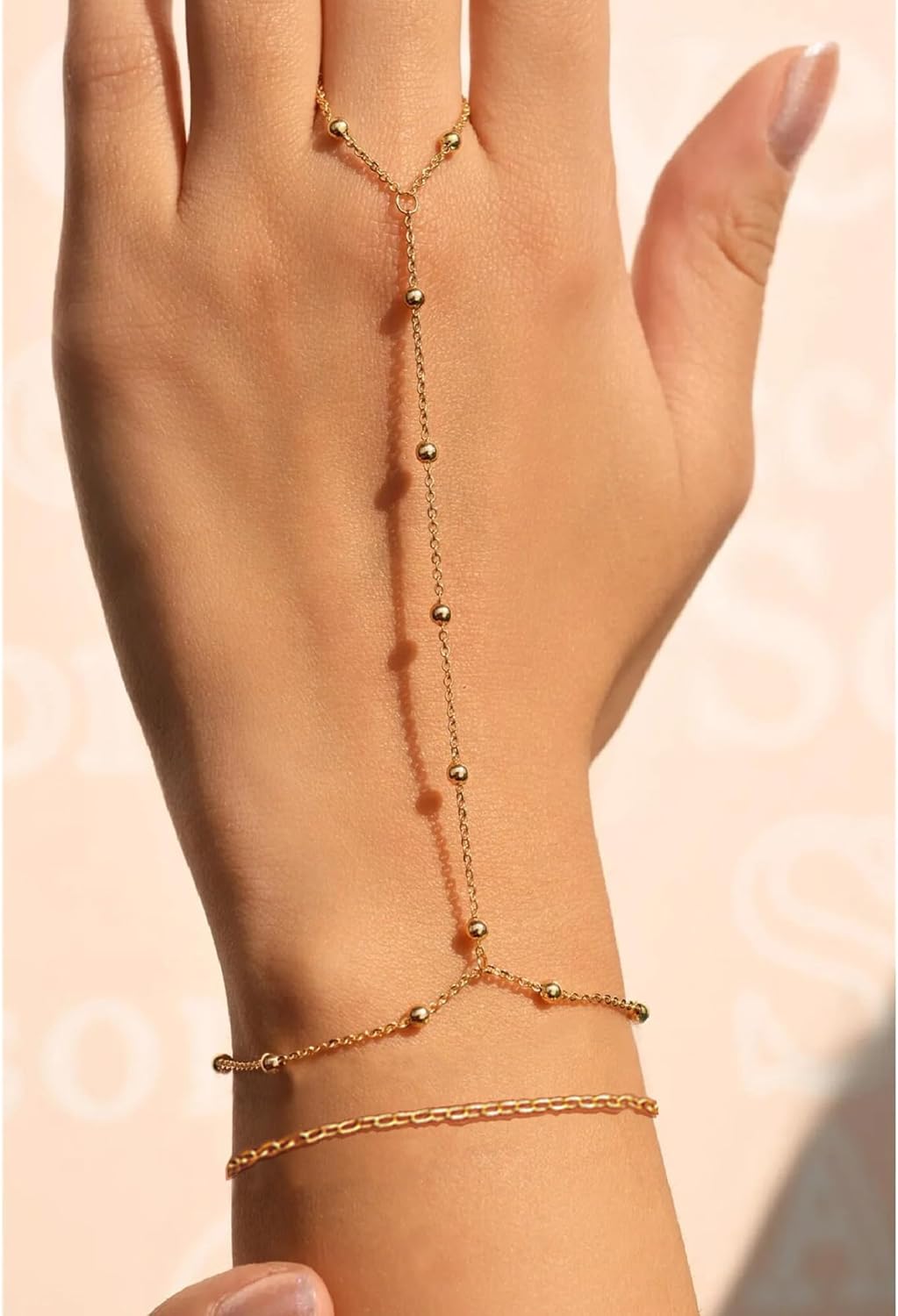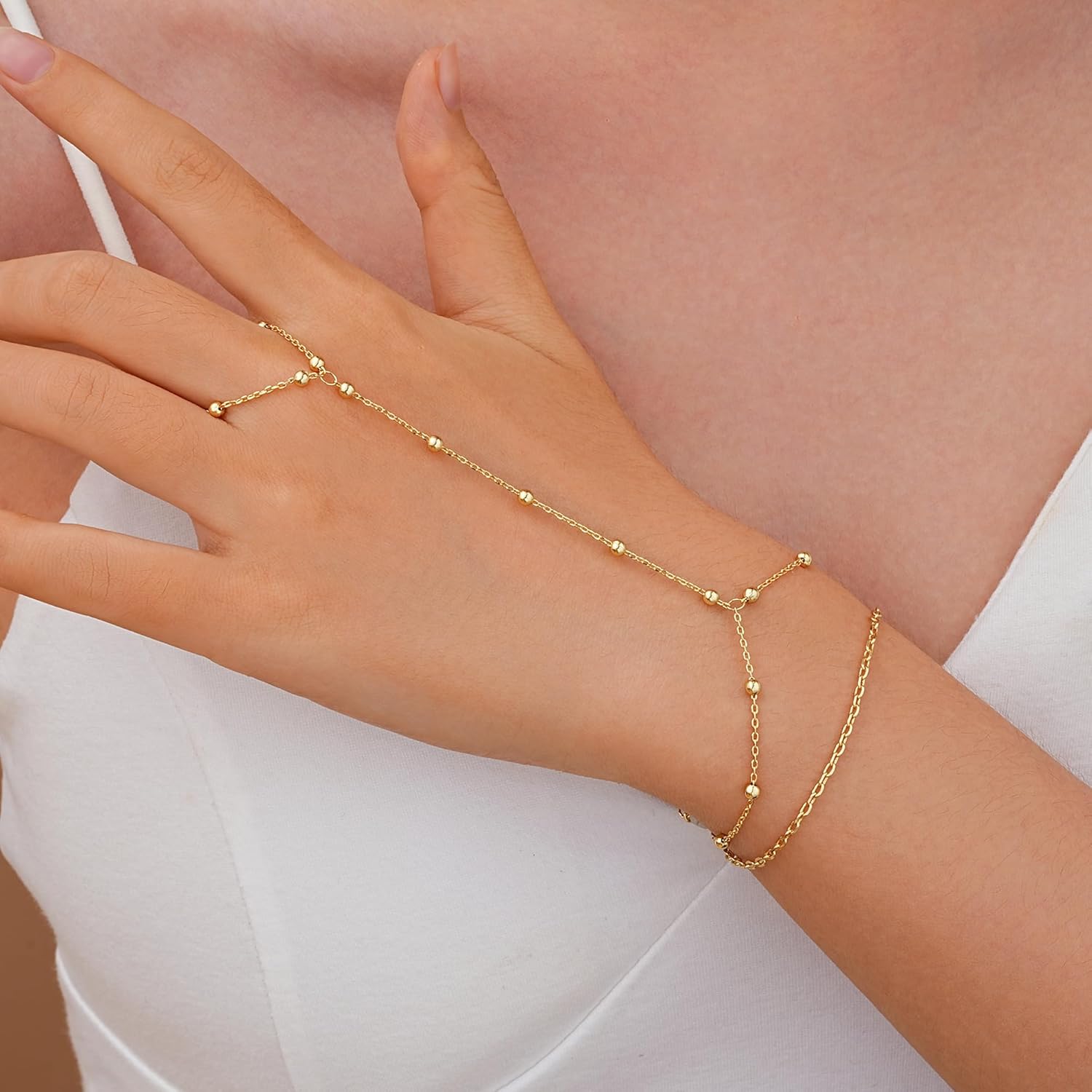 Ensemble de bracelets chaîne à main ÌF ME plaqué or 14 carats, bracelets en or durables pour femmes, bracelet de doigt ajustable, bijoux de main avec rallonge, parfait pour un usage quotidien, bague, bracelet, main