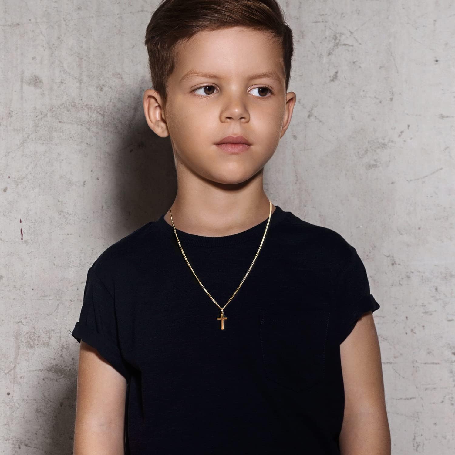 Collier Croix Joxevyia pour pendentif croix petit en acier inoxydable rempli d'or 14 carats avec chaîne cubaine Collier simple foi Bijoux cadeau de Noël pour hommes femmes 16-24 pouces