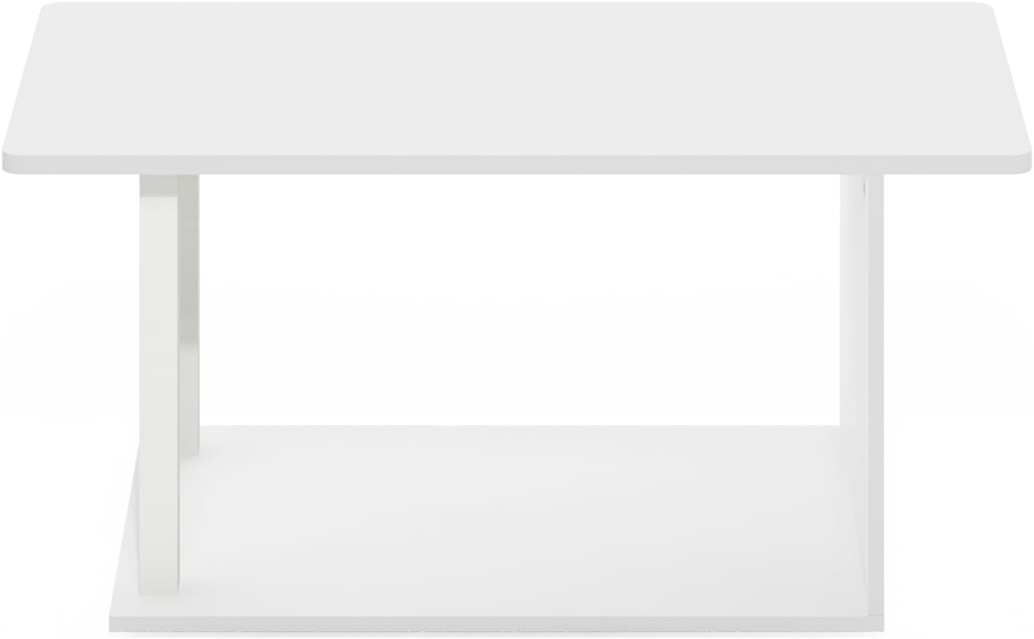 Furinno Basic Coffee Table, 2-Tier Modern Coffee Table with Open Shelf, Easy Assembly Side Table, for Living Room, Bedroom, Home Office, White