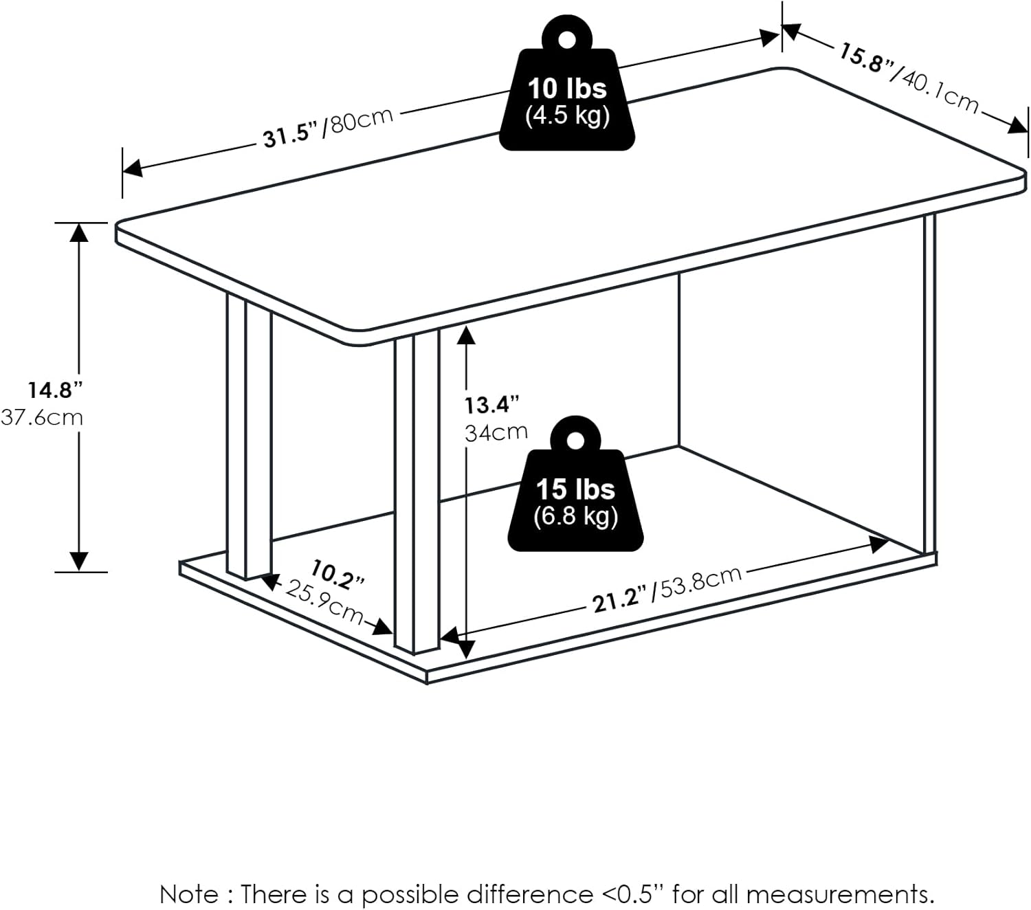 - WEIGHT CAPACITY: The tabletop of this coffee table/ side table supports up to 10 lbs and the lower shelf up to 15 lbs; Total support 15 lbs