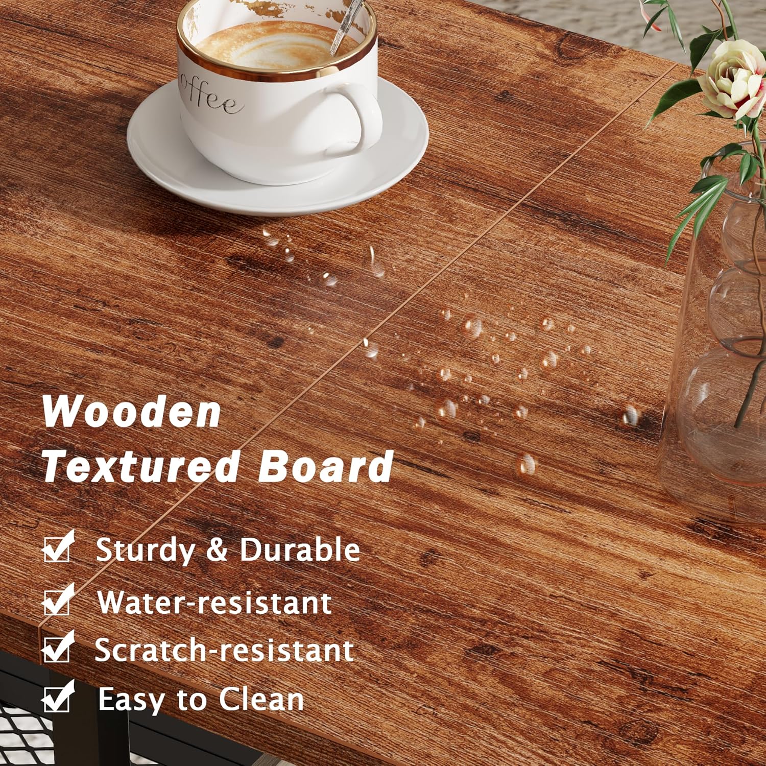 - [Stylish Modern Design] The rich matte brown finish of the coffee table delivers a bold, modern statement in any living space. Its smooth, scratch-resistant surface resists fingerprints while the minimalist metal legs for a contemporary aesthetic, perfect for various style living room