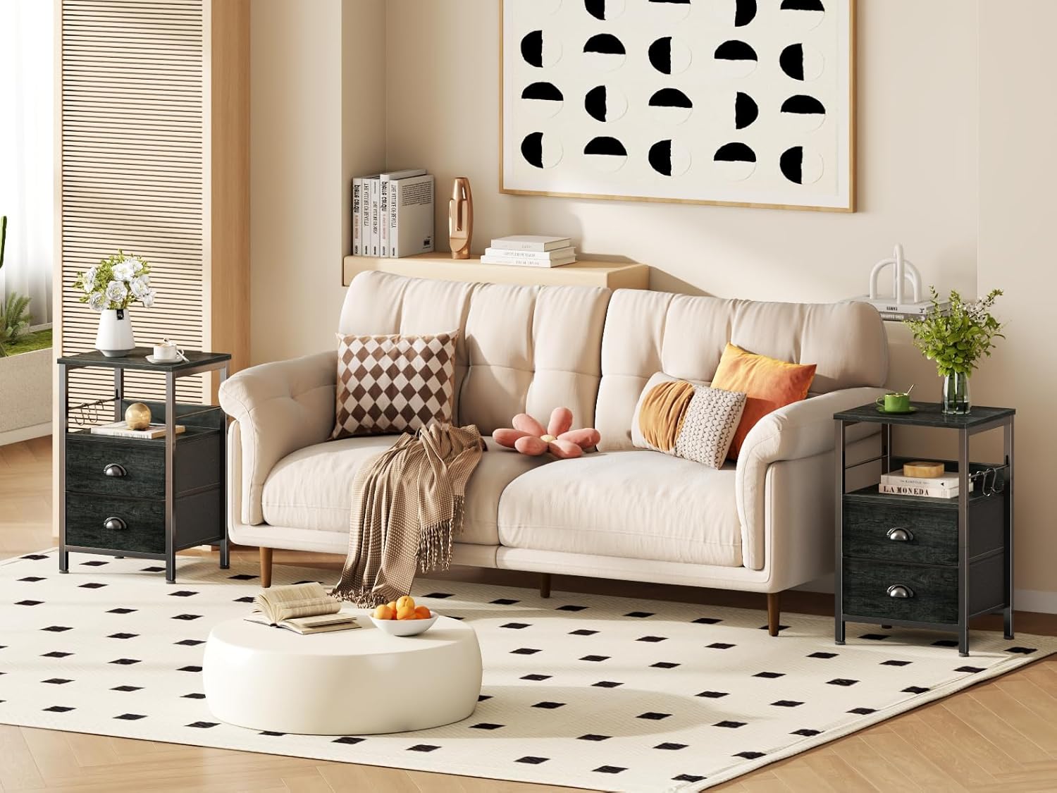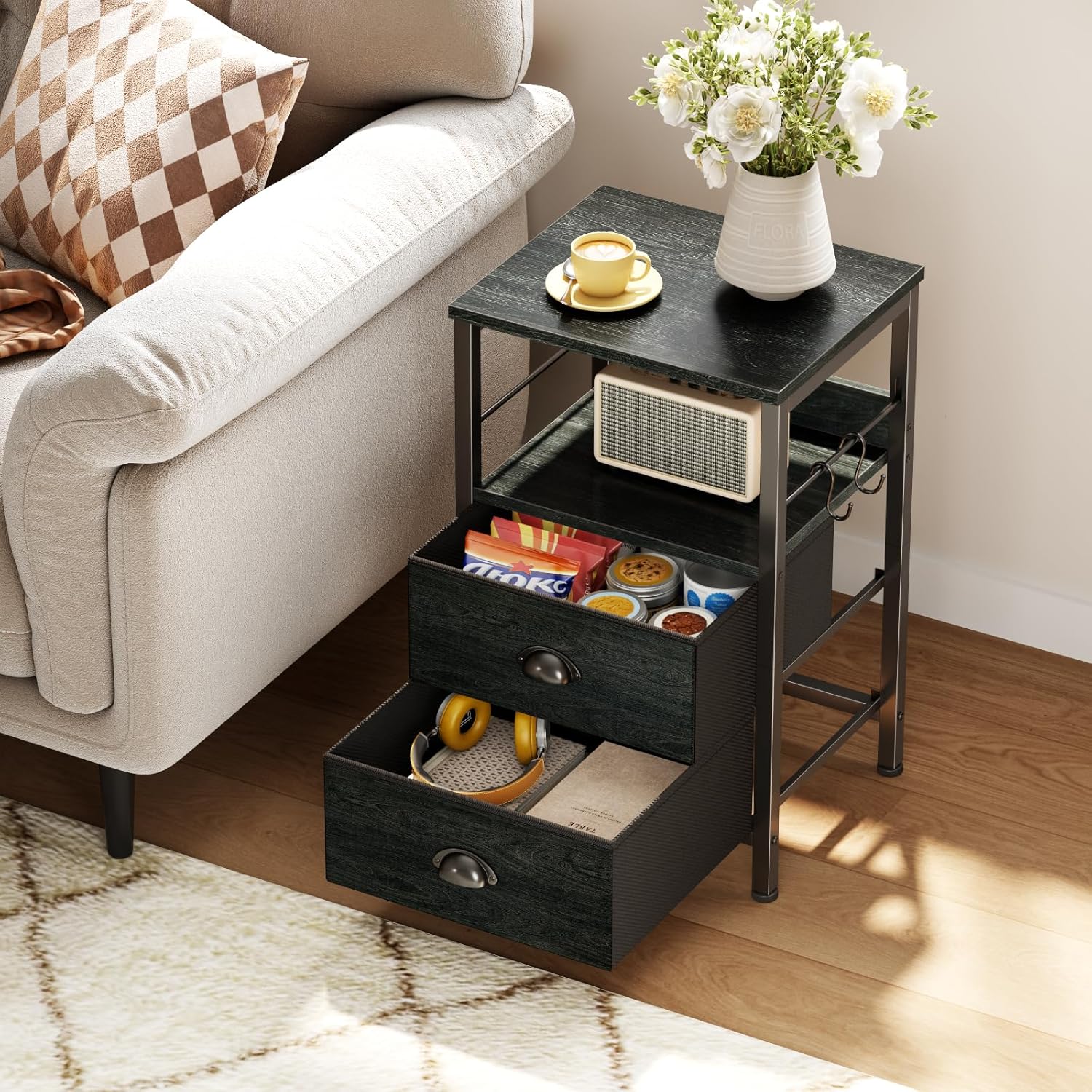- End Tables with 2 Hooks: Equipped with 2 S-shaped metal hooks to add extra storage space. You can hang headphones, file folders, keys, small backpacks, hats and so on. Removable hooks can be hung on the side table or in other place.