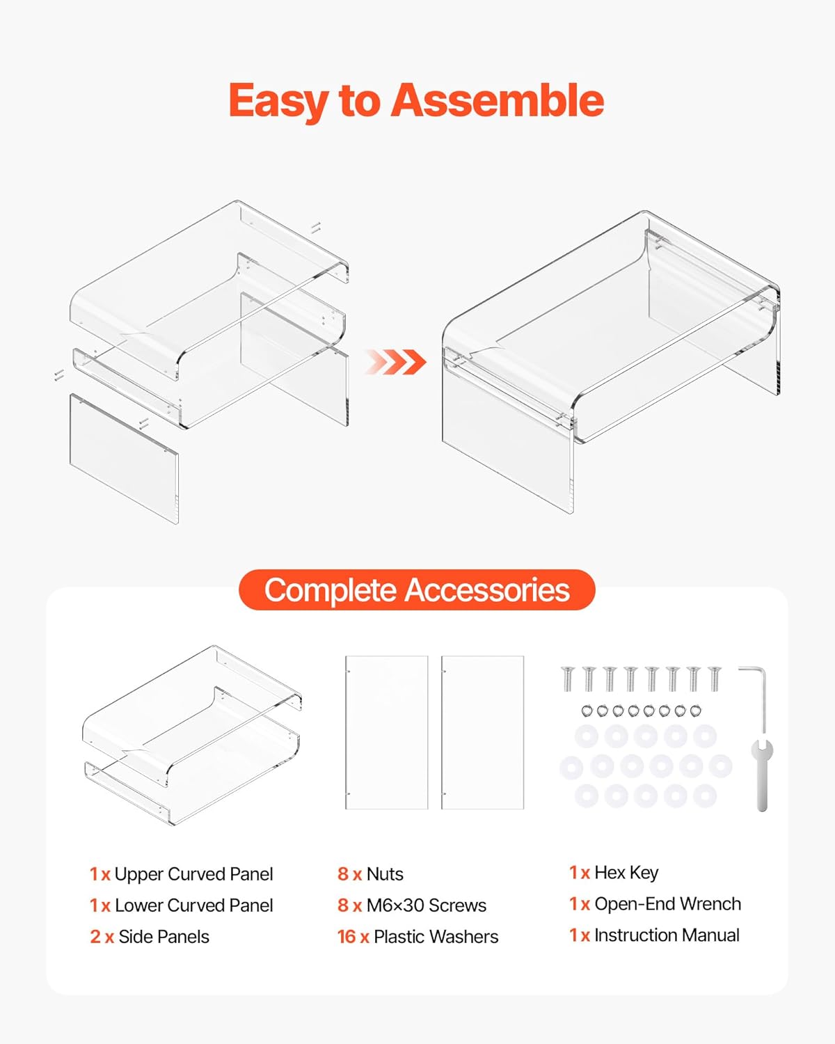 - Easy Assembly & Clean: The accessory and instructions make assembly quick. For maintenance, wipe with water or acrylic cleaner. (Note: Remove the protective film after assembly. Do not use alcohol to clean and avoid long-term outdoor exposure to sunlight.)