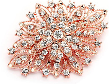 L'épingle de broche en or rose de Mariell scintille avec des cristaux autrichiens flamboyants dans un design vintage à couper le souffle. Cette broche en or blush illuminera votre robe de mariée, les robes des demoiselles d'honneur, la robe de la mère de la mariée ou une robe de soirée pour ajouter une dose sérieuse de bling. Que vous la fixiez sur une ceinture de robe, un décolleté, un revers, une écharpe ou une veste, cette magnifique broche reproduction antique garantira un look de bijou d'héritage glamour... à un prix fabuleux. Elle peut également être utilisée pour décorer un bouquet de mariage floral. Cette épingle en cristal autrichien inspirée du style Gatsby présente un magnifique design floral géométrique débordant de cristaux Swarovski scintillants. Notre broche blush rose, toujours très populaire, mesure 7,3 cm de large sur 5 cm de haut et est l'ajout tendance parfait à la collection de bijoux de toute femme. Elle est plaquée en or rose 14 carats avec une finition. Nous vous promettons que vous adorerez cette broche. Offrez-vous ou offrez à quelqu'un que vous aimez le look des bijoux de collection à un prix incroyable.