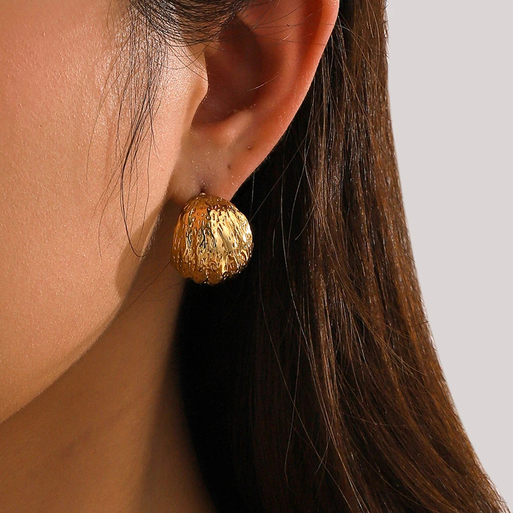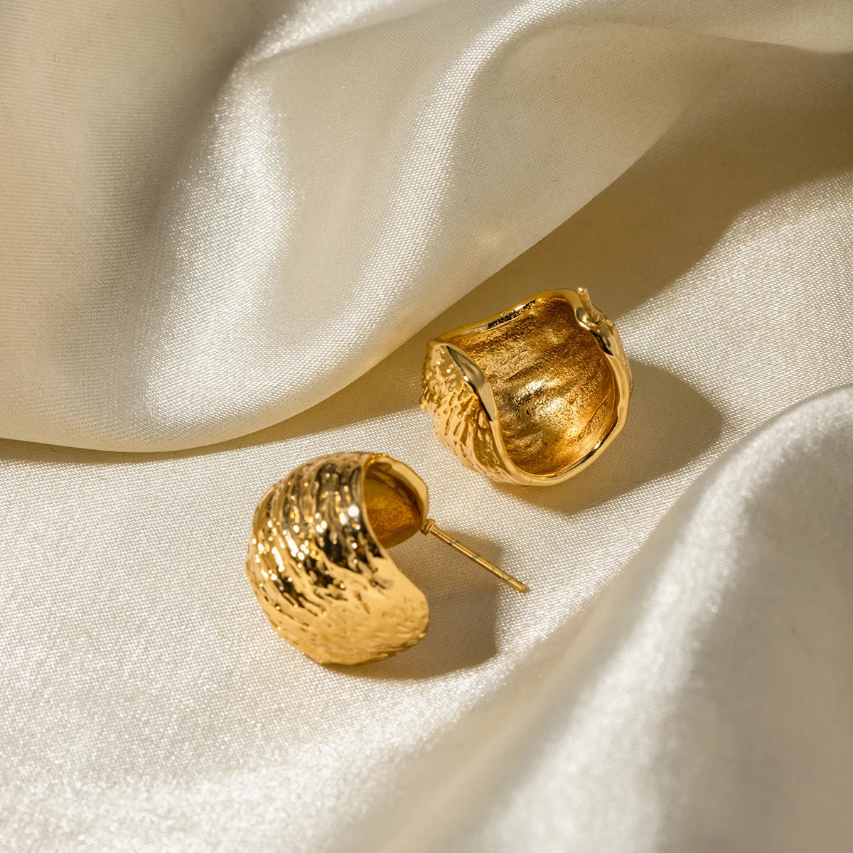 Boucles d'oreilles en acier inoxydable plaqué or 18 carats, minimalistes, épaisses, avec sensation de texture, en forme de C, anti-allergie, bijoux tendance et charmants