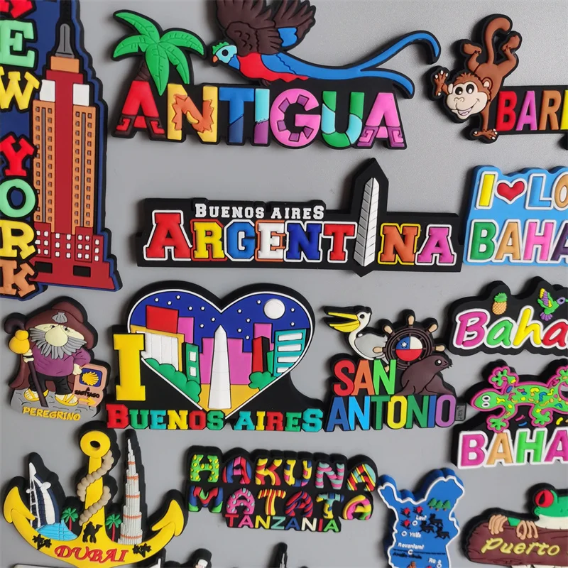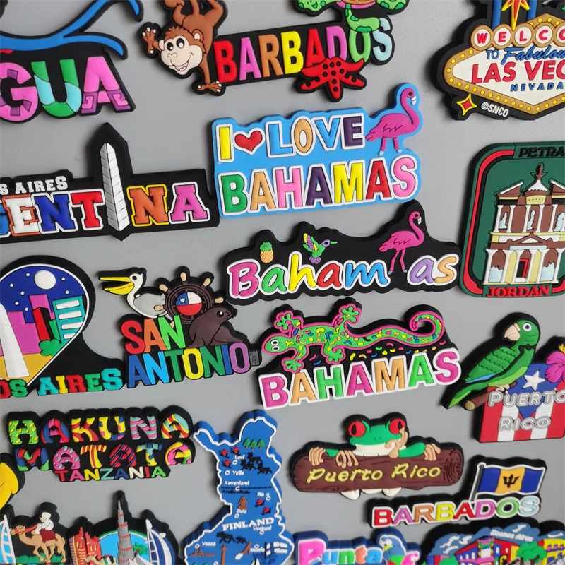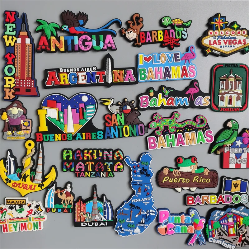 Dubaï Tanzanie Antigua New York Bahamas Porto Rico Finlande Barbade Argentine Kenya Cancun Mexique Jamaïque PVC Aimant de réfrigérateur