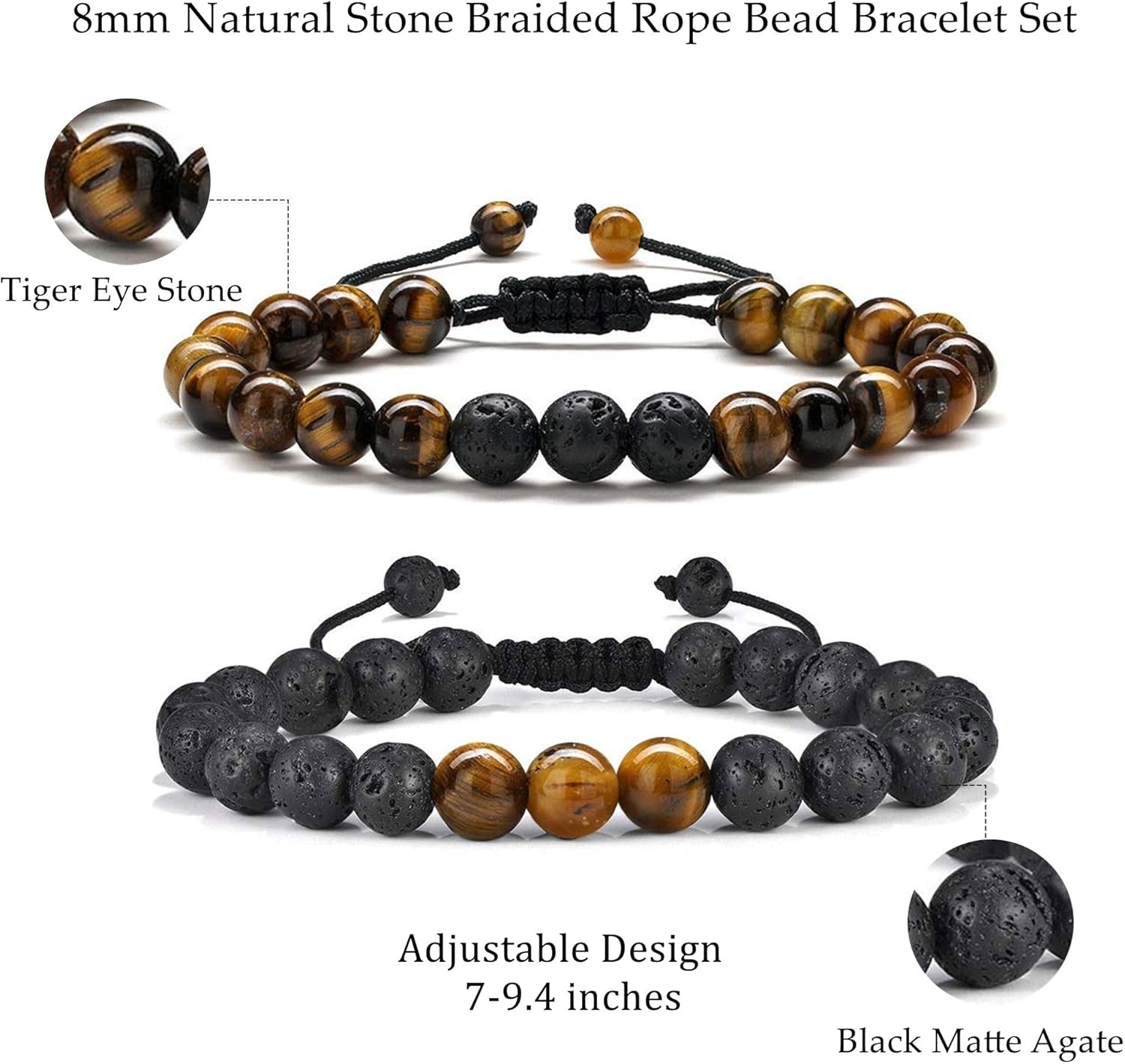 M MOOHAM Bracelets en pierre naturelle pour hommes - Œil de tigre 8mm, agate mate, roche de lave - Cadeaux pour adolescents garçons pour anniversaire, anniversaire de mariage, Noël