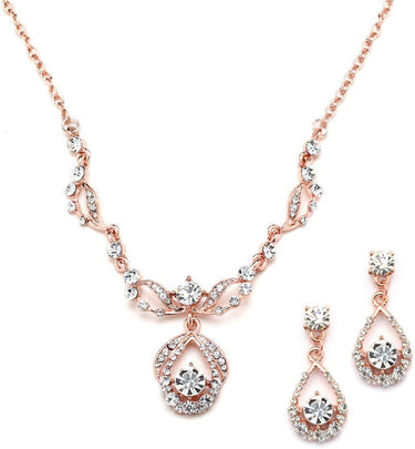 Ensemble de bijoux de mariage Mariell en or rose vintage avec collier en cristal et boucles d'oreilles pour mariées, demoiselles d'honneur, bal