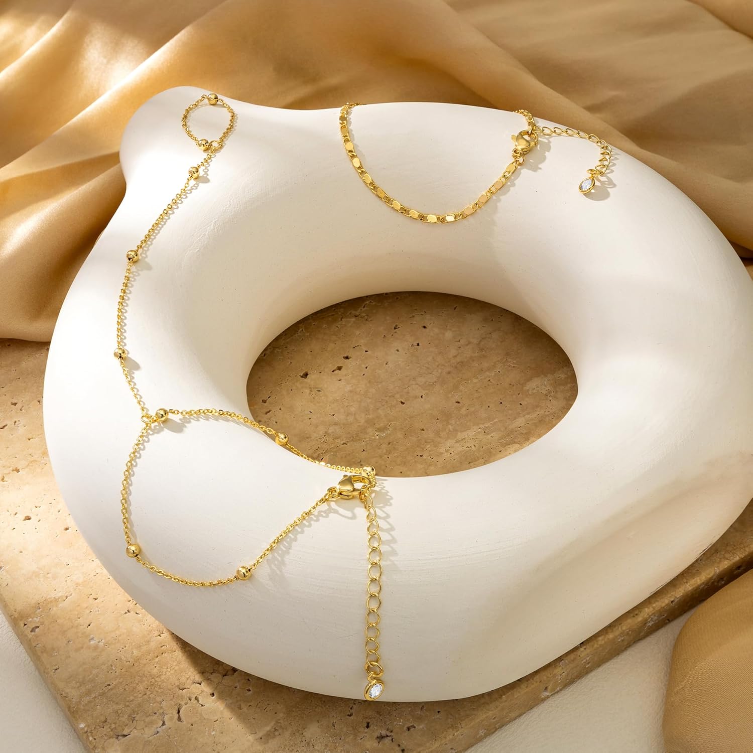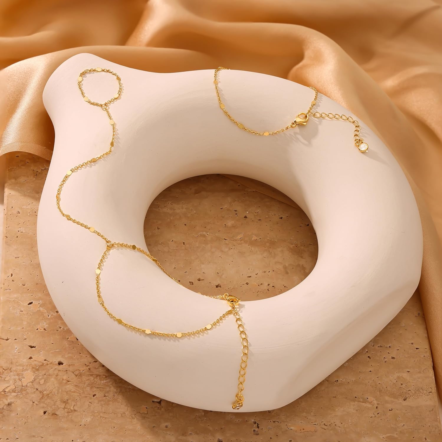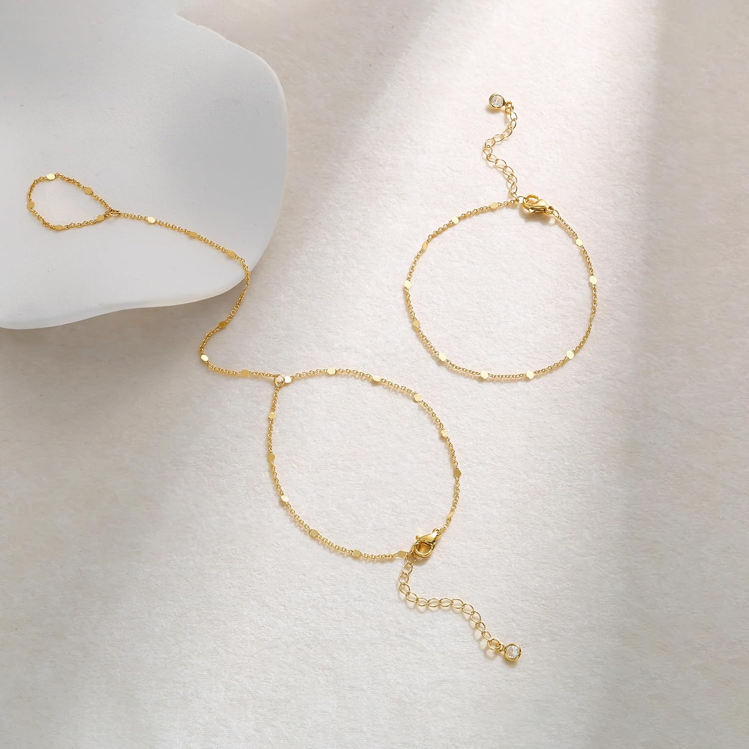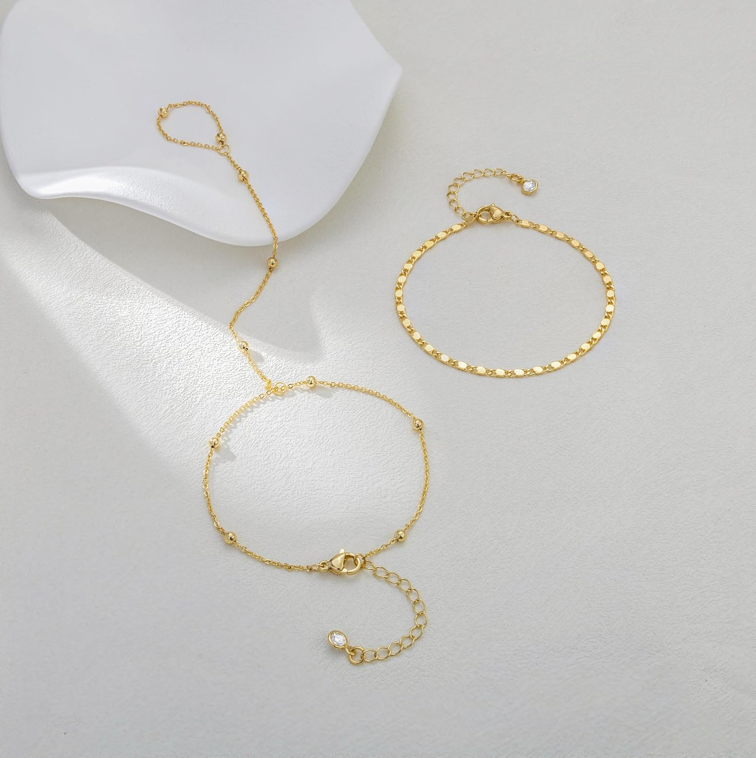 - 🎀Longueur Ajustable : La longueur du bracelet chaîne de main en or est de 6,5 "; la longueur du bracelet bague est de 3,9 "; nous avons également conçu une extension de 1,5" sur la chaîne ; vous pouvez ajuster la longueur adaptée pour le porter