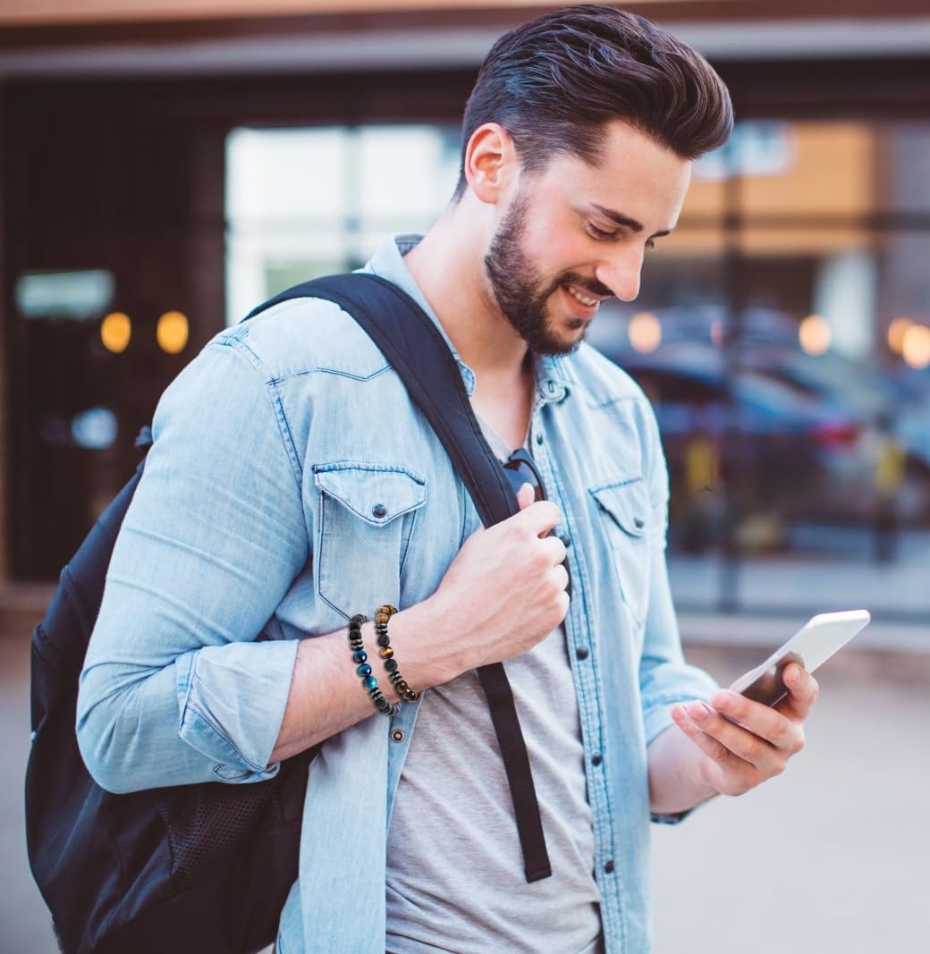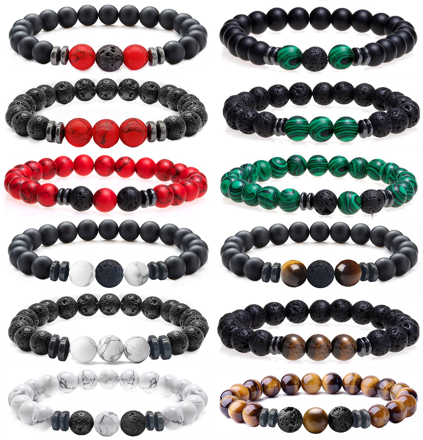 MOZAKA 12 pièces Bracelets perles en pierre de lave naturelle 8mm pour hommes femmes Œil de tigre Hématite Onyx noir perles mates Bracelets diffuseurs d'huile essentielle perles en pierre de lave en gros